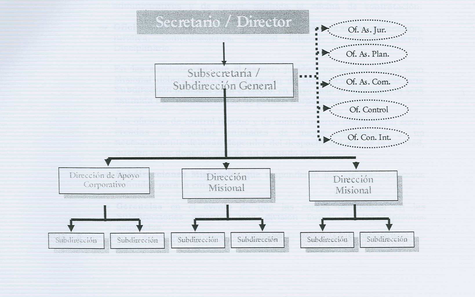*ENTIDADES DEL SECTOR DESCENTRALIZADO. En particular los establecimientos públicos y las Unidades Administrativas Especiales con personería jurídica: *Junta Directiva del Establecimiento Público *Despacho del Director (a) *Secretaría General que se ocupará de coordinar la gestión administrativa al interior del establecimiento público, de la cual dependerán las áreas que gestionan todos los aspectos administrativos y de apoyo, incluida la oficina de contratación.*Oficinas que dependerán del Director: Asesoras de planeación, jurídica, comunicaciones, Control Interno y Control Interno Disciplinario. En las entidades en que el aspecto jurídico no sea de apoyo sino Misional deberá omitirse la creación de una oficina y crearse una Subdirección Misional para el efecto, en cuyo caso la contratación será asumida por la Subdirección de gestión Corporativa. Las oficinas de control interno y de control interno disciplinario serán creadas en aquellas entidades de mayor complejidad y no necesariamente deberán depender del despacho del jefe de la entidad, pueden estar dependiendo de un segundo nivel. *Subdirecciones Misionales que responderán por los macroprocesos definidos para la entidad. *Gerencias en el evento de que las cargas de trabajo en las Subdirecciones ameriten una división formal de las funciones asignadas. Presentación gráfica de la propuesta de estructura interna y funcional: