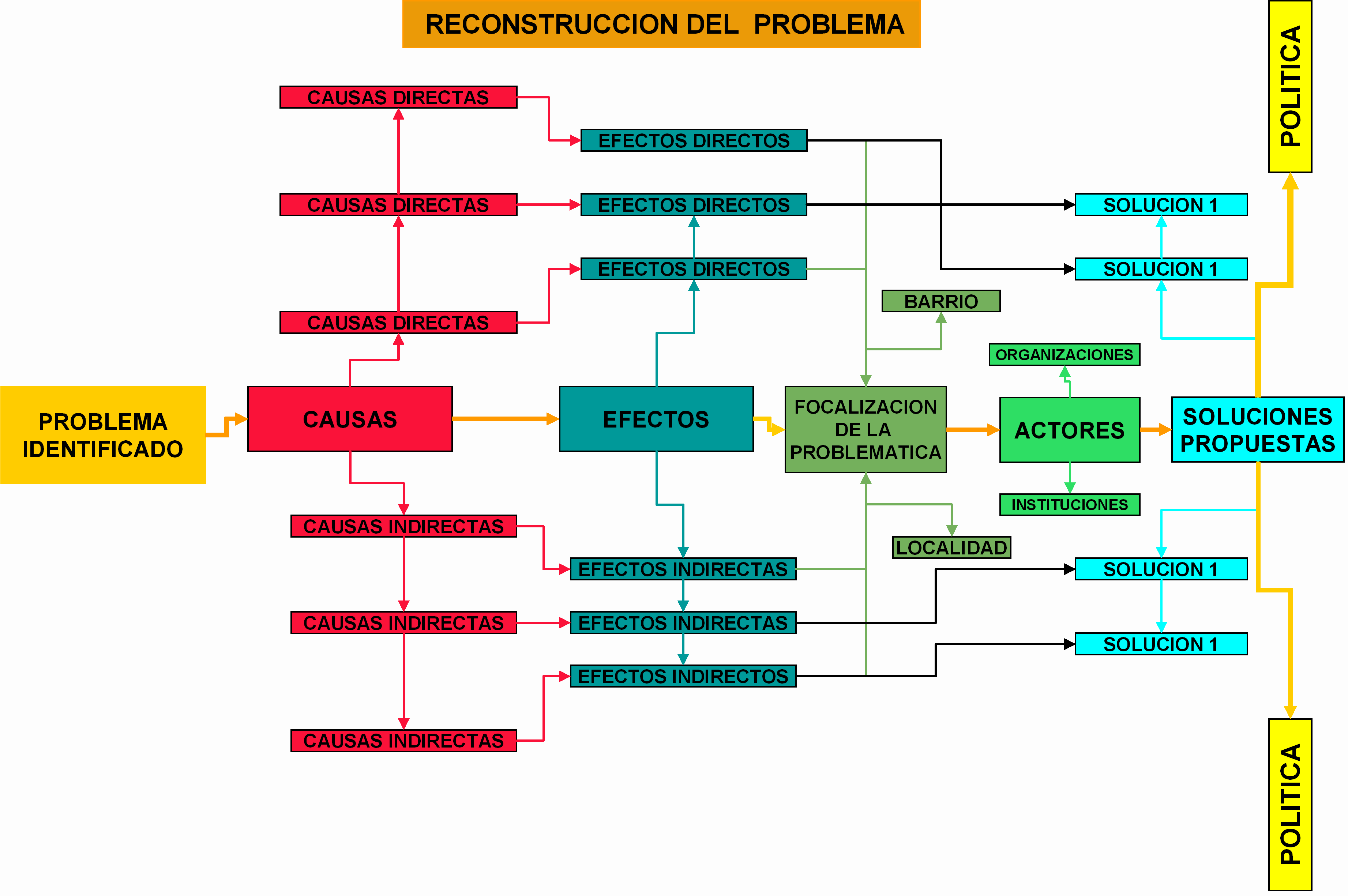 La reconstrucción del problema consiste en identificar las causas y efectos de un problema o situación, focalizando la población afectada y estableciendo alternativas de solución.