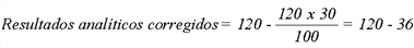 4.2. INTERPRETACION DE LOS RESULTADOS Los resultados analíticos obtenidos para los materiales citados en los numerales 7, 8 y 9 deben corregirse restando el coeficiente de corrección analítica indicado en la Tabla 2, con el fin de obtener unos resultados analíticos corregidos. Los materiales se considerarán satisfactorios con respecto a los requisitos de esta norma si los resultados analíticos corregidos son inferiores o iguales a los límites indicados en la Tabla 1 (véase el Anexo D). Nota. Dada la exactitud de los métodos especificados en esta norma, es necesario utilizar los resultados analíticos corregidos para tener en cuenta los resultados de los ensayos interlaboratorios (véase el Anexo D). EJEMPLO. Resultados analíticos para el plomo 120 mg/kg.