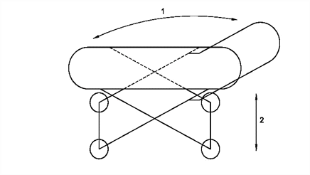 1 Movimiento de la manija 2 Movimiento del chasis Figura 8. Silla de empujar para bebé o cochecito paseador de juguete cubierto por el literal a) del numeral 4.12.1 b) las sillas y cochecitos de juguete que no presenten el peligro de que una manija u otro miembro estructural se doble sobre el niño: deben tener al menos: Un dispositivo de seguro o un tope de seguridad, que puede ser de operación manual. Cuando se ensaya conforme indica el numeral 5.22.2 el juguete no debe colapsar y el dispositivo de seguro o tope de seguridad no debe fallar o desengranarse. Si es posible enderezar parcialmente una silla o cochecito de juguete sin que uno de los dispositivos de seguro esté engranado, el ensayo especificado en el numeral 5.22.2 se debe llevar a cabo en esa orientación (véase la nota). En la Figura 9 se ilustra un ejemplo de silla o cochecito de juguete que se ajusta a lo especificado en el literal b).