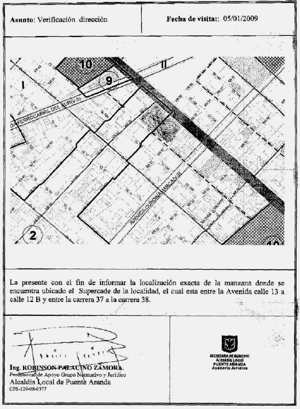 RESOLUCIÓN 009 DE 2009 (Enero 14) Por la cual se determina nuevas zonas especiales en la localidad de Puente Aranda LA ALCALDESA LOCAL DE PUENTE ARANDA En uso de las atribuciones legales conferidas por el numeral 7 del artículo 86 del Decreto Ley 1421 de 1993 y el Artículo 13 del Decreto 98 de 2004. CONSIDERANDO: Que el numeral 7 del artículo 86 del Decreto ley 1421 de 1993, dispone que corresponde a los alcaldes locales "dictar los actos y ejecutar las operaciones necesarias, para la protección, recuperación y conservación del espacio público, el patrimonio cultural, arquitectónico e histórico, los monumentos de la localidad, los recursos naturales y el ambiente, con sujeción a la ley, a las normas nacionales aplicables, y a los acuerdos distritales y locales". Que el articulo 13 del Decreto 98 de 2004, en materia de zonas especiales previene que: "Corresponde a los Alcaldes Locales, en coordinación con la Policía Metropolitana de Bogotá, determinar las zonas de su jurisdicción que por cuestiones de seguridad, no pueden ser ocupadas temporal o permanentemente por vendedores informales. Así mismo los Alcaldes Locales, en coordinación con el Fondo de Ventas Populares determinarán aquellas que deben ser reservadas para desarrollar actividades comerciales, culturales o de recreación, las cuales no pueden ser ocupadas temporal o permanentemente por vendedores ambulantes." Que adicionalmente el supercade se considera un sector aledaño a las estaciones de Transmilenio con el objeto de evitar aglomeración de vendedores ambulantes lo que no permiten un control efectivo por parte de la Policía Metropolitana sobre estas zonas. Que en la jurisdicción de la Alcaldía Local de Puente Aranda, es imperioso por las razones mencionadas, determinar la siguiente zona especial, con el objeto de que la Policía Metropolitana pueda ejercer un control permanente sobre este sector. *Zonas aledañas a l supercade de la localidad. Ver la Resolución 18 de 2005, Ver la Resolución 163 de 2007 RESUELVE: ARTÍCULO PRIMERO. Adoptar como zona especial los alrededores de supercade en la localidad de Puente Aranda de acuerdo con la siguiente relación (Ver plano anexo).