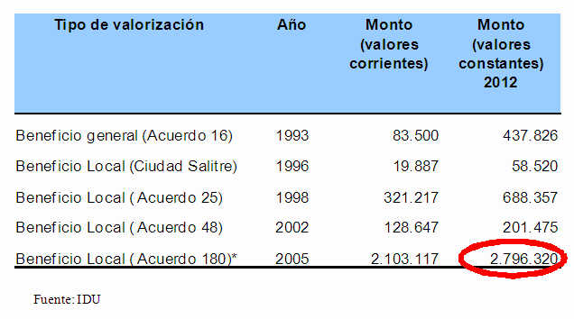 El Concejo de Bogotá aprobó el Acuerdo 489 de 2012 "Por el cual se adopta el Plan de Desarrollo Económico, Social, Ambiental y de Obras Públicas para Bogotá D. C. 2012- 2016 – Bogotá Humana" y en el parágrafo del artículo 59 estableció: "Con el fin de armonizar los programas y proyectos del presente Plan de Desarrollo con los planes de obras de los acuerdos 180 de 2005 y 451 de 2010, la administración podrá presentar un proyecto de acuerdo al Concejo de la ciudad, que responda a criterios de capacidad de pago, eficiencia, beneficio y equidad, acorde con el modelo de desarrollo de la ciudad".