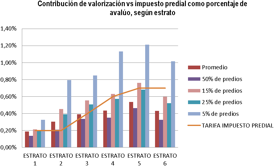 Ahora bien, el método de factores de beneficio parte de la premisa que las intervenciones urbanas que realiza el estado, y cuyo impacto esperado es el incremento en el valor de las propiedades inmuebles, producen tal efecto por las rentas diferenciales del suelo. En este sentido, variables como el uso económico del predio, la densidad en edificación, el estrato socioeconómico y el área de terreno son factores que hacen que un predio absorba más o menos valorización cuando es afectado por una obra de infraestructura. También presupone que el beneficio que produce para el predio una obra determinada es mayor cuando éste se encuentra cerca de la obra que cuando está lejos.