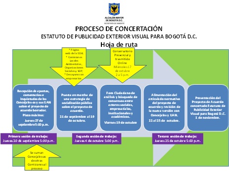 Luego de varios intentos por generar una normatividad que regulara de forma suficiente el ejercicio de la Publicidad Exterior Visual - PEV, desde una perspectiva ambiental, y diera respuesta al sentir de la ciudadanía recogido por la Encuesta Multipropósito 2011, en la que 179.464 personas señalan exceso de anuncios publicitarios por toda la ciudad, la administración distrital de la Bogotá Humana, bajo el liderazgo de la Secretaría Distrital de Ambiente, se dio a la tarea de emprender un proceso amplio y participativo de concertación del contenido del Acuerdo que, a partir de la construcción de un proceso de legitimidad social y política, sentara las bases de lo que será el comportamiento de los actores privados y públicos, alrededor de una Publicidad Exterior Visual ambientalmente sostenible, remediando la dispersión y en algunos casos, la ambivalencia normativa.
