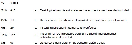 De otro lado el citado Informe resultante del convenio interadministrativo 1140 de 2009 revela una cifra alarmante en cuanto a la percepción de la comunidad, de las 10 localidades analizadas concluye que el 91% de la ciudad posee problemas de contaminación visual.