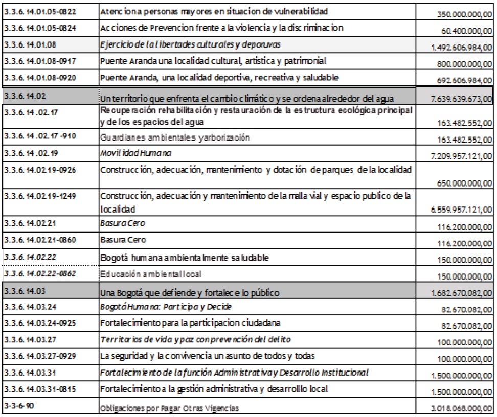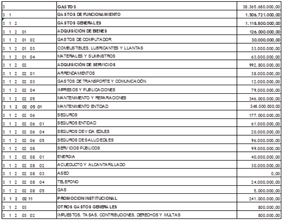 ARTÍCULO 2.- Corregir el Decreto 09 mediante el cual se fijo el Presupuesto Anual de Gastos de la Alcaldía Local de Puente Aranda, para la vigencia fiscal comprendida entre el 1º de enero al 31 de diciembre de 2014, por la suma de TREINTA Y OCHO MIL TRESCIENTOS SESENTA Y CINCO MILLONES SEISCIENTOS OCHENTA PESOS MCTE($38.365.680.000), conforme al siguiente detalle: