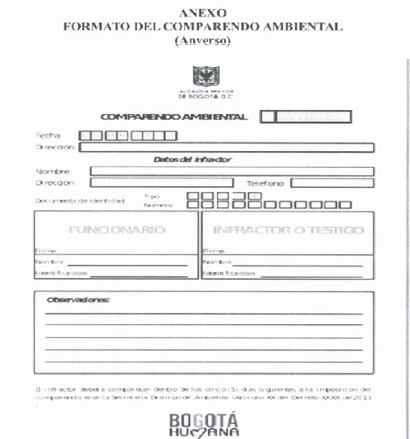 PARÁGRAFO.- Derogado por el art. 7, Decreto Distrital 539 de 2014. Entiéndase por Comparendo Ambiental la orden formal de notificación para que el presunto infractor se presente ante la autoridad competente.