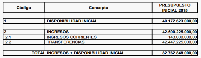 ACUERDO LOCAL 004 DE 2014 (Diciembre 15) Liquidado por el Decreto Local 15 de 2014 Por cual se expide el Presupuesto de Ingresos y Gastos del Fondo de Desarrollo Local de Suba para la vigencia fiscal comprendida entre el 1º de enero y el 31 de diciembre de 2015 LA JUNTA ADMINISTRADORA LOCAL DE SUBA En uso de sus atribuciones constitucionales y legales, en especial las que le confiere la Constitución Política de Colombia en su artículo 324 y artículo 17 del Decreto 372 del 2010. CONSIDERANDO: Que la Alcaldesa Local presentó el Proyecto de Presupuesto para el Fondo de Desarrollo Local de Suba 2015 a nivel de agregados, para estudio, debate y aprobación de la JAL dentro de los términos establecidos en el Artículo 15 del Decreto 372 de 2010. Que la Secretaría Distrital de Hacienda mediante comunicación No. 2014EE244785 del 30 de octubre de 2014, comunicó la Cuota de Asignación 2015 por un monto total de CINCUENTA MIL VEINTE MILLONES DOSCIENTOS VEINTICINCO MIL PESOS M/CTE. ($50.020.225.000.oo) para la inversión de vigencia, en la cual se incluyen los Ingresos Corrientes generados por la localidad. Que las recomendaciones efectuadas en el Comité Funcional realizado el día lunes 10 de noviembre de 2014, en las instalaciones de la Secretaria de Hacienda – DDP, fueron debidamente atendidas. Que el Consejo Distrital de Política Económica y Fiscal - CONFIS en su reunión No. 16 del 25 y 28 de noviembre y 2 de diciembre de 2014,y mediante radicado 2201453764 del 02 de diciembre de 2014, ajusto el índice de distribución de recursos a los FDL, correspondiéndole al FDL de Suba el 6.32%, y emitió concepto favorable a los anteproyectos de Presupuesto de los 20 Fondos de Desarrollo Local para la vigencia fiscal del año 2015, lo cual modifico las partidas contenidas en la comunicación No. 2014EE244785 del 30 de octubre de 2014, porcentaje que en monto absoluto asciende para el FONDO DE DESARROLLO LOCAL DE SUBA a la suma de OCHENTA Y DOS MIL SETECIENTOS SESENTA Y DOS MILLONES OCHOCIENTOS CUARENTA Y OCHO MIL PESOS M/CTE. ($82.762.848.000.oo) discriminados así: CUARENTA MIL CUATROCIENTOS OCHENTA Y SIETE MILLONES OCHOCIENTOS SETENTA Y OCHO MIL PESOS M/CTE. ($40.487.878.000.oo) correspondientes a Inversión Directa, DOS MIL CIENTO DOS MILLONES TRESCIENTOS CUARENTA Y SIETE MIL PESOS M/CTE. ($2.102.347.000.oo) a Gastos de Funcionamiento y CUARENTA MIL CIENTO SETENTA Y DOS MILLONES SEISCIENTOS VEINTITRES MIL PESOS M/CTE. ($40.172.623.000.oo) a Obligaciones por Pagar. Que es función de la Junta Administradora Local aprobar el Presupuesto Anual del respectivo Fondo de Desarrollo Local, previo concepto favorable del CONFIS. Que en mérito de lo anteriormente expuesto, Ver Decretos Locales 003 y 008 de 2015, Ver Acuerdo Local 001 de 2015. ACUERDA: ARTÍCULO PRIMERO. Fíjense los cómputos del Presupuesto Anual de Rentas e Ingresos del Presupuesto Anual del Fondo de Desarrollo Local de Suba para la vigencia fiscal comprendida entre el 1º de enero y el 31 de diciembre de 2015 en la suma de OCHENTA Y DOS MIL SETECIENTOS SESENTA Y DOS MILLONES OCHOCIENTOS CUARENTA Y OCHO MIL PESOS M/CTE. ($82.762.848.000.oo), conforme al siguiente detalle: