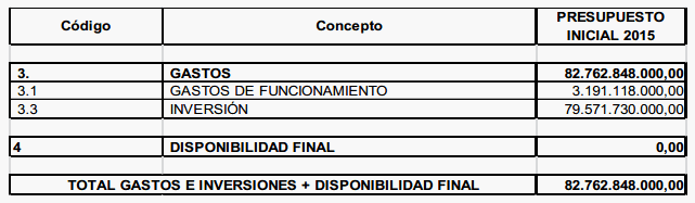 ARTÍCULO SEGUNDO. Fíjense los cómputos del Presupuesto Anual de Gastos e Inversiones del Presupuesto Anual del Fondo de Desarrollo Local de Suba para la vigencia fiscal comprendida entre el 1º de enero y el 31 de diciembre de 2015 en la suma de OCHENTA Y DOS MIL SETECIENTOS SESENTA Y DOS MILLONES OCHOCIENTOS CUARENTA Y OCHO MIL PESOS M/CTE. ($82.762.848.000.oo), Conforme al siguiente detalle: