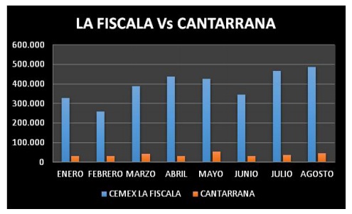 Grafica 1. Comparación cantidades dispuesta en los predios la Fiscala y Cantarranas año 2014 (Unidades o interpretación de la tabla)