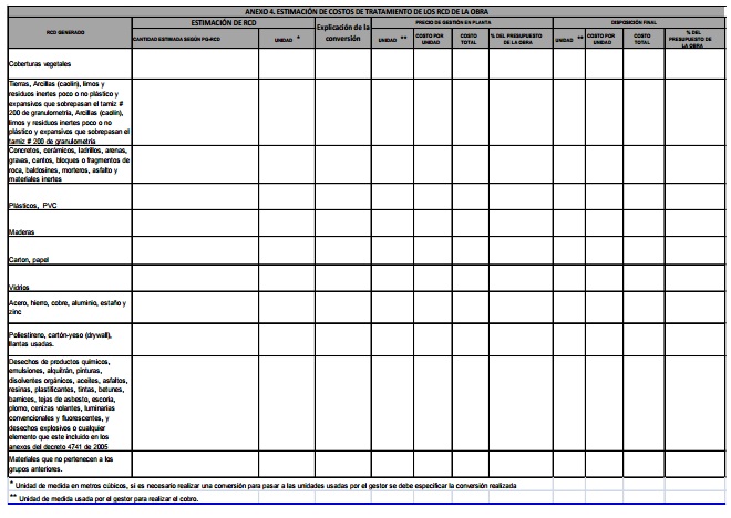 ANEXO. 4 ESTIMACIÓN DE COSTOS DE TRATAMIENTO DE LOS RCD DE LA OBRA