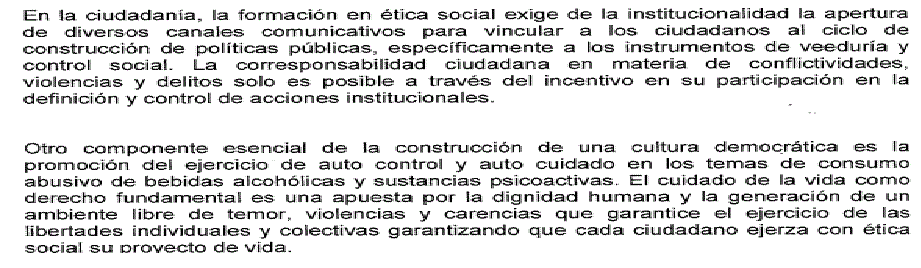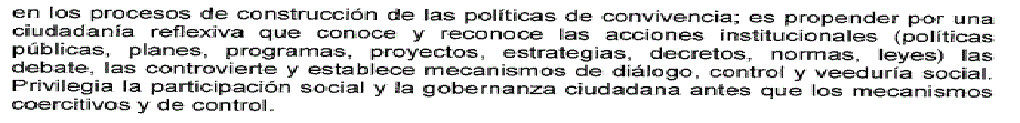 Enmarcarán en conceptos como la convivencia, la confianza pública, la apropiación ética y responsable de lo público, el bien común, la construcción democrática de acuerdos y la cultura de paz.