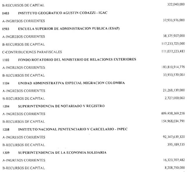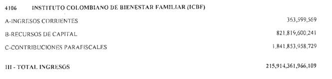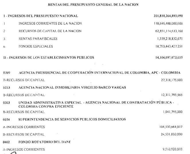 ARTÍCULO 1o. Fíjense los cómputos del presupuesto de rentas y recursos de capital del Tesoro de la Nación para la vigencia fiscal del 1° de enero al 31 de diciembre de 2016, en la suma de DOSCIENTOS QUINCE BILLONES NOVECIENTOS CATORCE MIL TRESCIENTOS SESENTA Y UN MILLONES NOVECIENTOS SESENTA Y SEIS MIL CIENTO NUEVE PESOS MONEDA LEGAL ($215,914,361,966,109), según el detalle del Presupuesto de Rentas y Recursos de Capital para el 2016, así: