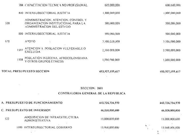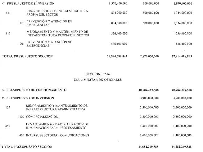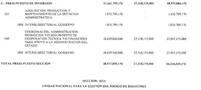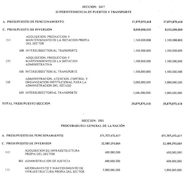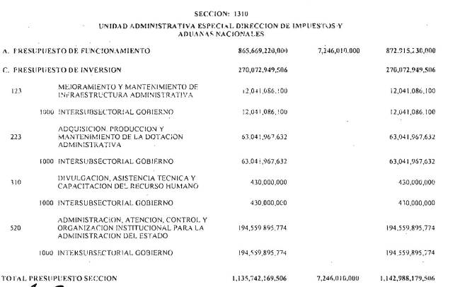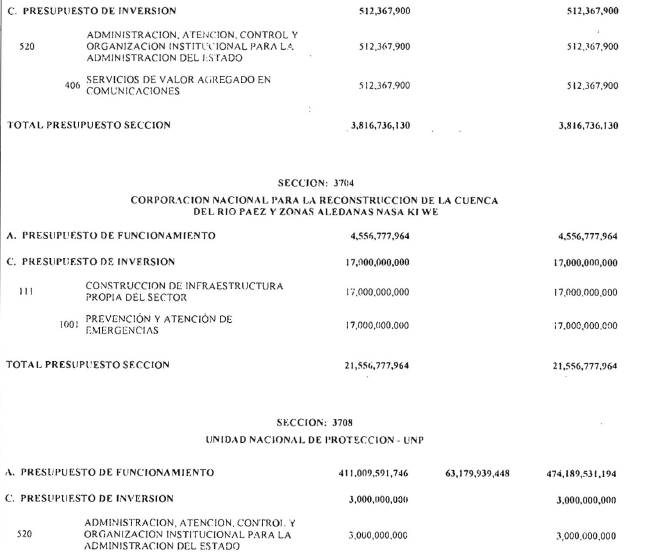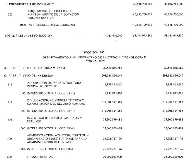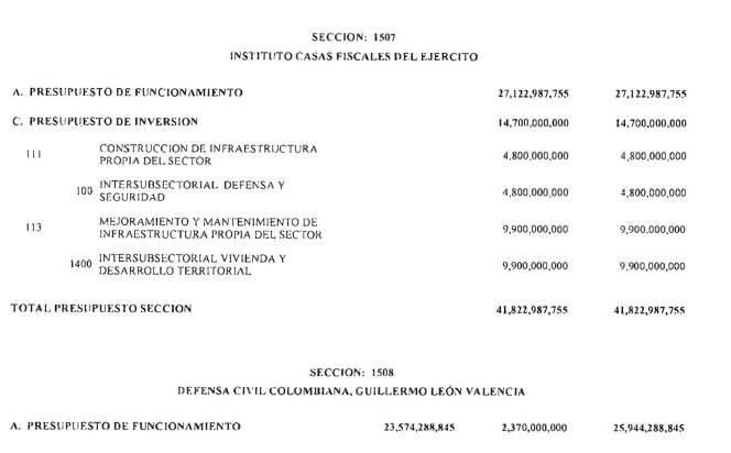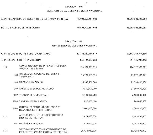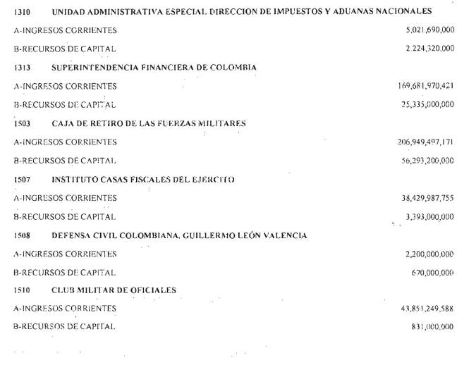 Adicionalmente, el Ministerio de Hacienda y Crédito Público en el decreto de liquidación constituirá en cada sección presupuestal una provisión equivalente al 1% del monto total del Presupuesto General de la Nación excluyendo los recursos del Sistema General de Participaciones para cubrir posibles caídas en los ingresos. Cada sección del Presupuesto General de la Nación deberá aportar proporcionalmente.