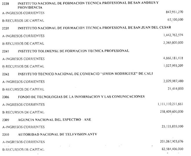 Por la cual se decreta el Presupuesto de Rentas y Recursos de Capital y Ley de Apropiaciones para la vigencia Fiscal del 1° de enero al 31 de diciembre de 2016