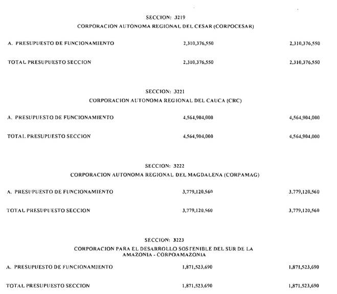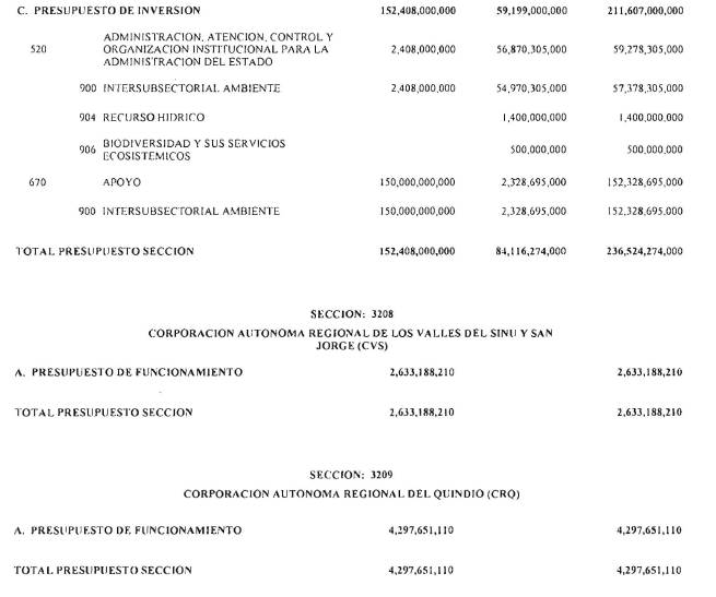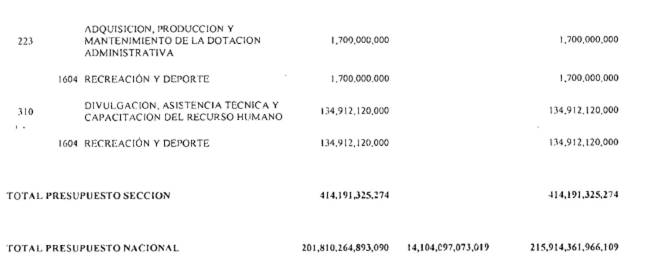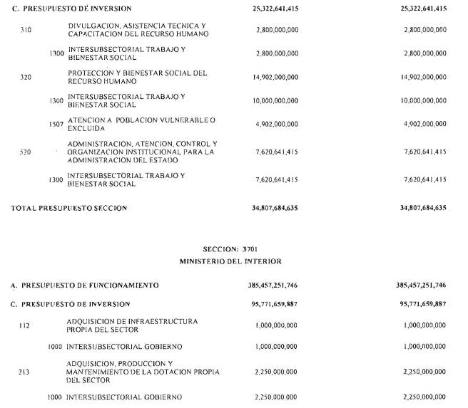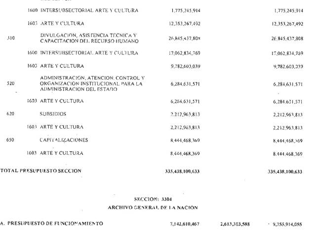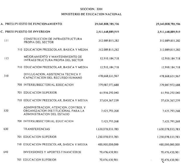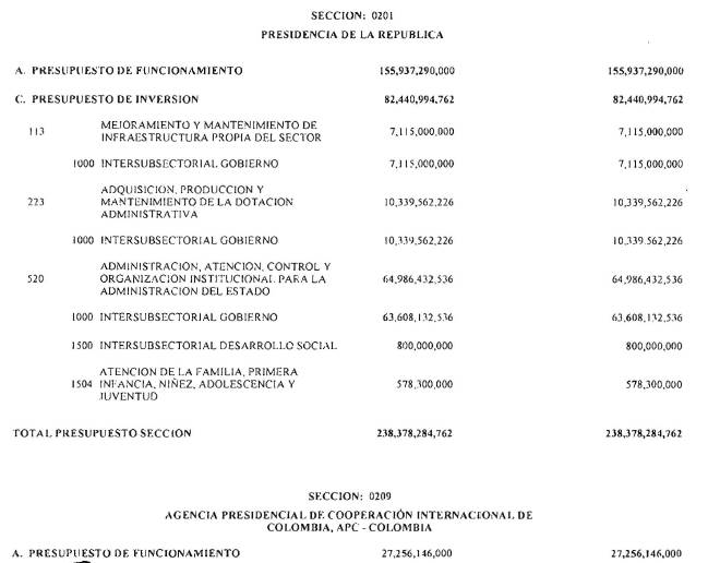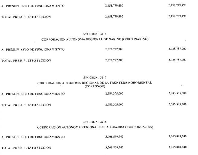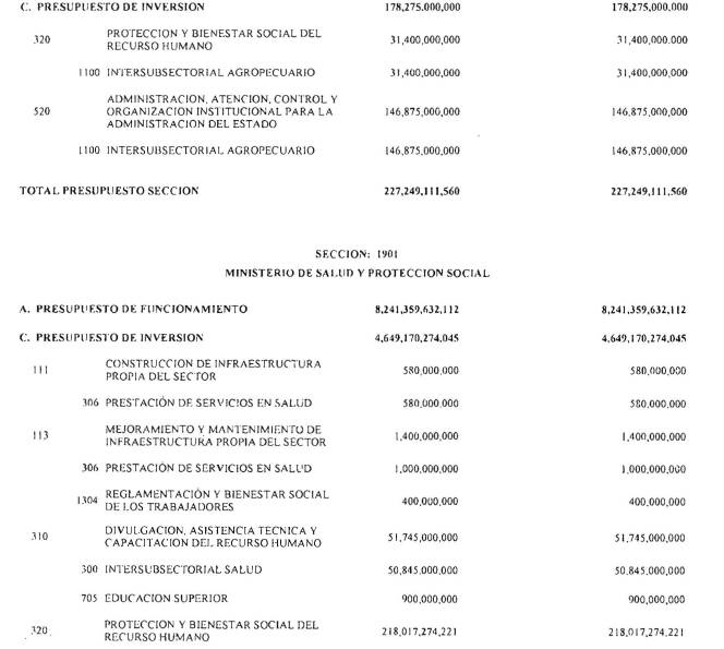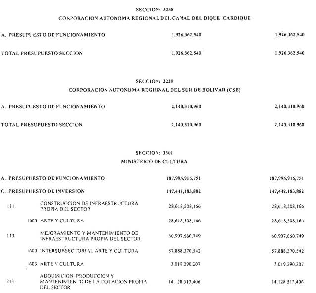 ARTÍCULO 3°. PRESUPUESTO DE GASTOS O LEY DE APROPIACIONES. Aprópiese para atender los gastos de funcionamiento, inversión y servicio de la deuda pública del Presupuesto General de la Nación durante la vigencia fiscal del 1° de enero al 31 de diciembre de 2016 una suma por valor de: DOSCIENTOS QUINCE BILLONES NOVECIENTOS CATORCE MIL TRESCIENTOS SESENTA Y UN MILLONES NOVECIENTOS SESENTA Y SEIS MIL CIENTO NUEVE PESOS MONEDA LEGAL ($215,914,361,966,109), según el detalle que se encuentra a continuación: