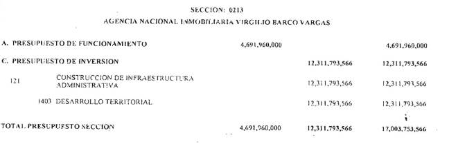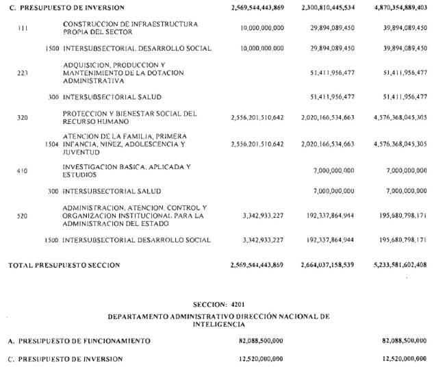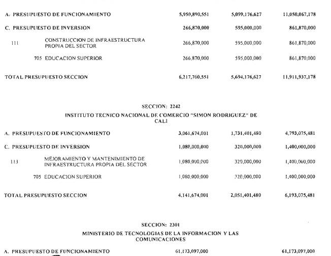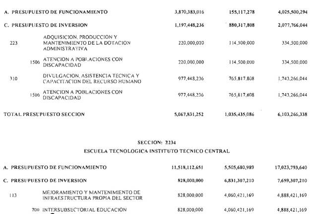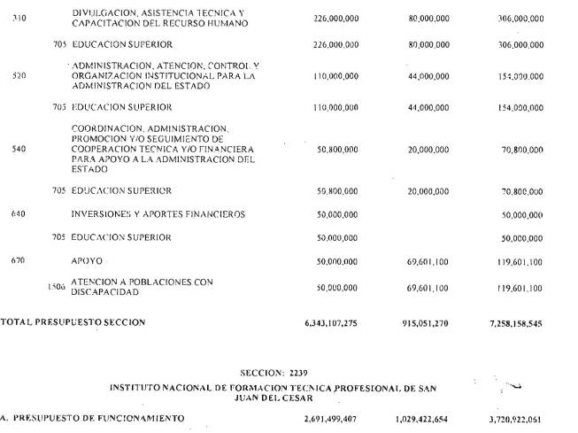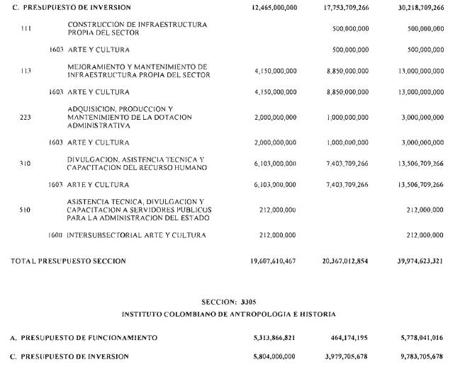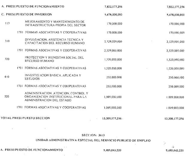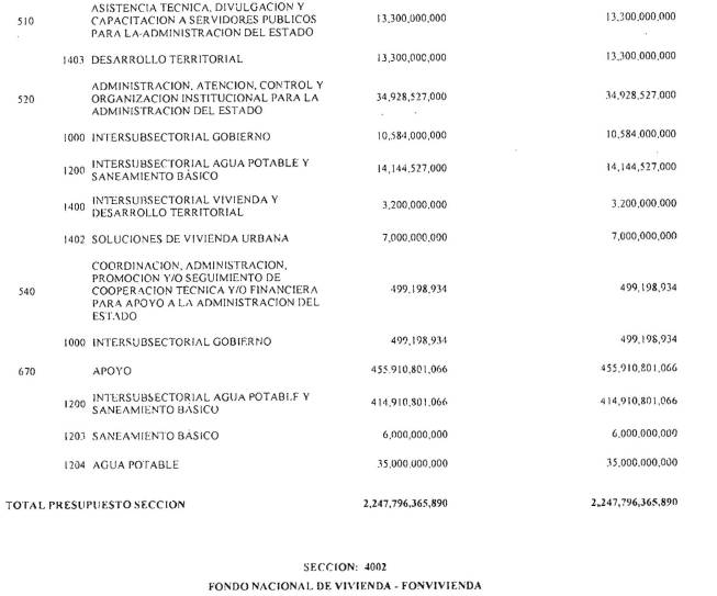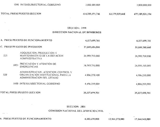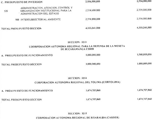 ARTÍCULO 3°. PRESUPUESTO DE GASTOS O LEY DE APROPIACIONES. Aprópiese para atender los gastos de funcionamiento, inversión y servicio de la deuda pública del Presupuesto General de la Nación durante la vigencia fiscal del 1° de enero al 31 de diciembre de 2016 una suma por valor de: DOSCIENTOS QUINCE BILLONES NOVECIENTOS CATORCE MIL TRESCIENTOS SESENTA Y UN MILLONES NOVECIENTOS SESENTA Y SEIS MIL CIENTO NUEVE PESOS MONEDA LEGAL ($215,914,361,966,109), según el detalle que se encuentra a continuación: