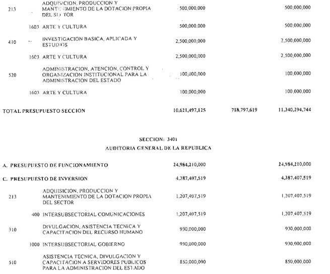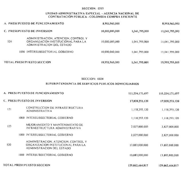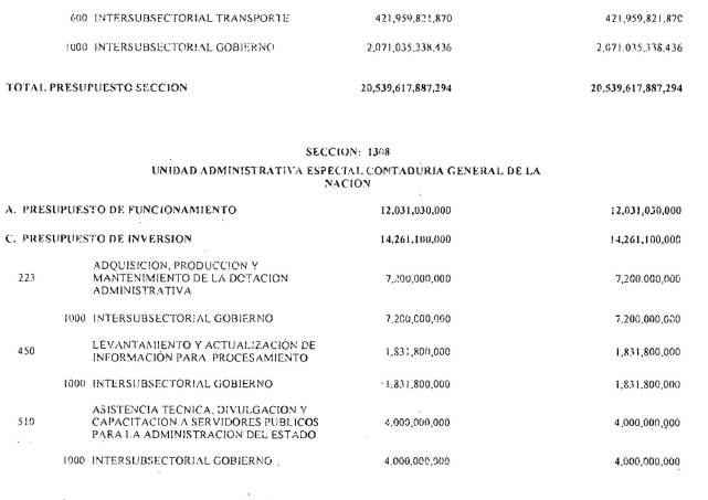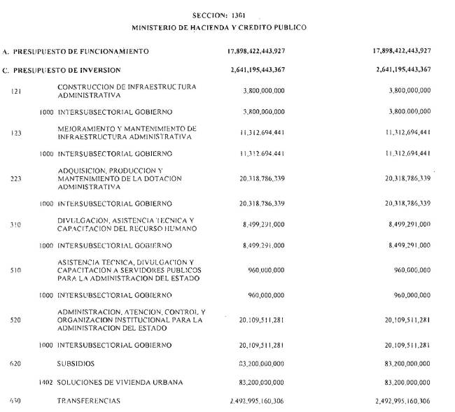 La Dirección General del Presupuesto Público Nacional del Ministerio de Hacienda y Crédito Público hará mediante resolución, las operaciones que en igual sentido se requieran durante el transcurso de la vigencia.