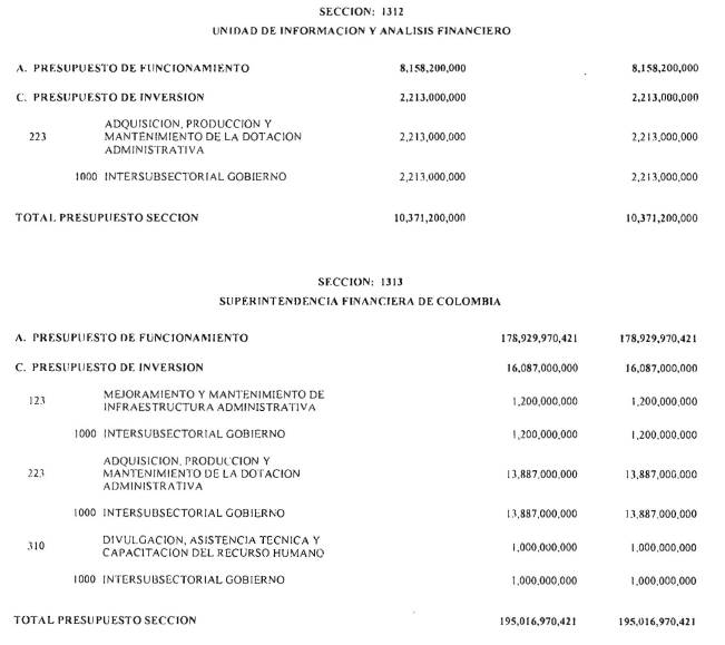 Las superintendencias que no sean una sección presupuestal deben consignar mensualmente, en la Dirección General de Crédito Público y Tesoro Nacional del Ministerio de Hacienda y Crédito Público el valor de las contribuciones establecidas en la ley.