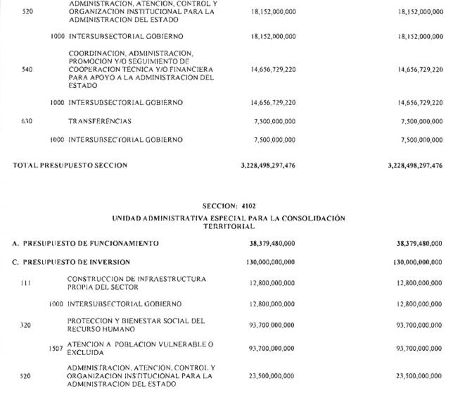 ARTÍCULO 108o. En el evento de lograrse la firma de acuerdos de paz, el Gobierno Nacional, deberá dar prioridad a la ejecución de los programas y subprogramas destinados a garantizar la presencia efectiva del estado en el territorio, especialmente en las zonas rurales de los municipios que  no hayan tenido presencia de grupos armados o cultivos ilícitos o minería ilegal, debiendo realizar las reducciones o aplazamientos que considere necesarios en otras apropiaciones presupuéstales.