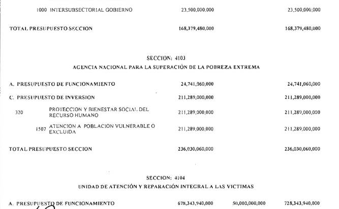 ARTÍCULO 102o. En el presupuesto del Ministerio de Hacienda y Crédito Público se incorporará una apropiación por la suma de $1.000.000.000.000 para garantizar el resultado fiscal consistente con las metas de la regla fiscal correspondiente a la vigencia 2016.
