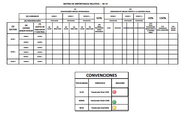 Matriz de Importancia Relativa (MIR): Herramienta estructurada en dos componentes (Operacional y de Resultados a la Gestión), que permite determinar el nivel de riesgo de los sujetos de vigilancia y control fiscal, como insumo para la focalización del Plan de Auditoria Distrital.