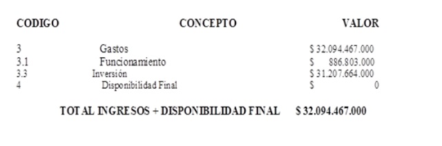 ARTÍCULO SEGUNDO: Fíjense los cómputos del presupuesto de Gastos del Presupuesto Anual del Fondo de Desarrollo Local de Antonio Nariño, para la vigencia fiscal de enero 1 a diciembre 31 de 2016, por la suma de $32.094.467.000 Treinta y dos mil noventa y cuatro millones cuatrocientos sesenta y siete mil pesos M/cte., conforme al siguiente detalle: