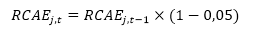 Donde: RCAEj,t: Prima de riesgo de cartera por atender usuarios de áreas especiales correspondiente al mercado de comercialización j, para el año t. t: Año calendario de vigencia de la metodología de comercialización. Cumplido el quinto año calendario de vigencia de la presente resolución, los comercializadores continuarán aplicando el porcentaje de RCAEj,t del año 5, hasta tanto la Comisión establezca una nueva metodología. En la solicitud de que trata el artículo 21 de esta resolución, los agentes comercializadores deberán suministrar la información requerida para realizar el cálculo de la variable RCAEj,t de acuerdo con lo establecido en este numeral. 3. Variable RCSNEi,j,t