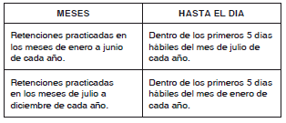 Las entidades que conforman el Presupuesto Anual del Distrito Capital de Bogotá declararán y pagarán mensualmente las retenciones practicadas por concepto de la “Estampilla Pro-Cultura” y “Estampilla Pro-Personas Mayores” para el año gravable correspondiente, dentro de los primeros 10 días hábiles de cada mes.