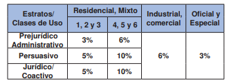 Para las clases de uso residencial, mixto y especial de los servicios de