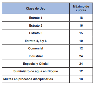 planes de pago para la clase de uso residencial, mixto y especial será el