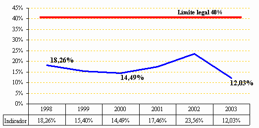 Gráfico 5. Comportamiento del Indicador Saldo/Ingresos Corrientes 1998 – 2003