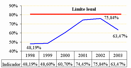 Fuente: Dirección Distrital de Crédito Público Gráfico 9. Comportamiento del Indicador Saldo/Ingresos Corrientes 1998 . 2003