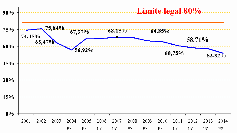 Fuente: Dirección Distrital de Crédito Público B. INDICADORES DE ENDEUDAMIENTO La Ley 358 de 1997 establece como capacidad de pago "... el flujo mínimo de ahorro operacional que permite efectuar cumplidamente el servicio de la deuda en todos los años, dejando un remanente para financiar inversiones". El límite fijado por la mencionada ley se define a través de los siguientes indicadores:
