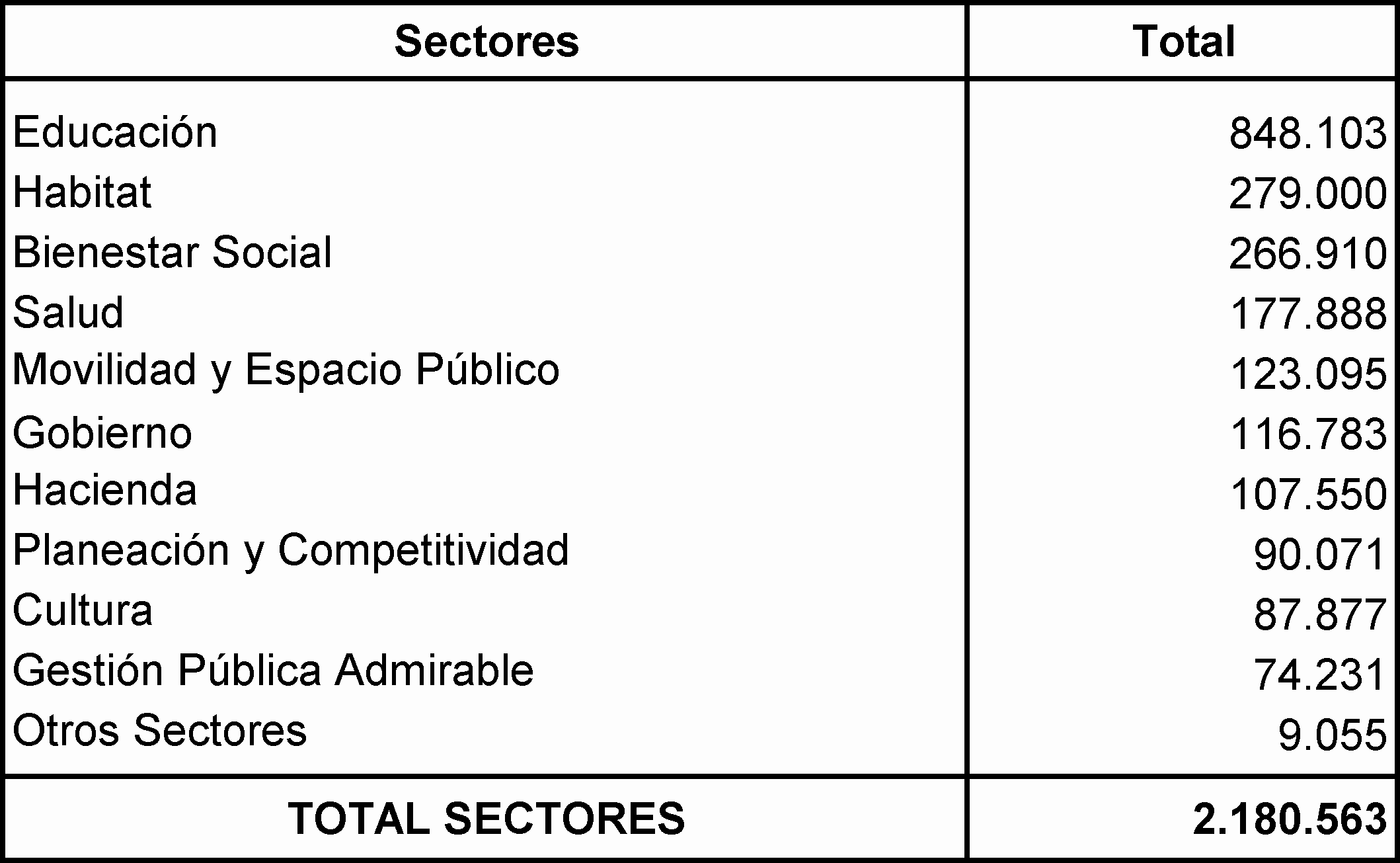En el cuadro 9 se detallan las cifras por cada uno de los sectores que conforman el Plan de Desarrollo.
