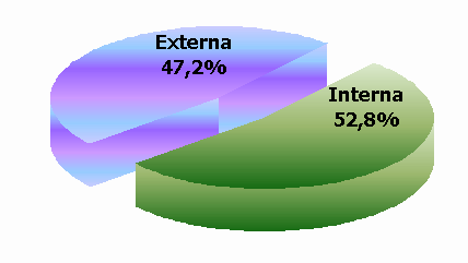 Fuente: Dirección Distrital de Crédito Público La deuda del Distrito está diversificada entre diferentes fuentes: Banca Interna, Bonos Internos, Banca Externa, Bonos Externos, Banca Multilateral y otros. Esta variedad de fuentes reduce la dependencia de una fuente en particular, contribuye a facilitar la consecución de fondos y mejora los términos de los mismos, al poder escoger entre la fuente disponible mas eficiente y generar competencia entre los prestamistas. El saldo de la deuda del Distrito Capital - Administración Central a 30 de septiembre de 2004 ascendía a la suma de $1.913.281,3 millones, su vida media2 de 3,18 años y una duración modificada3 de 0,83. La deuda externa ascendió a $902.9 mil millones (US$346,2 Millones) siendo la Banca Multilateral con la mayor participación con el 23,93% de la deuda total, mientras que la deuda interna alcanzó la suma de $1.010,4 miles de millones, siendo los bonos de deuda pública los más representativos en participación con el 37,49%, seguidos por la cartera ordinaria con el 14,38%. Cuadro 15. Perfil de la Deuda de la Administración Central del Distrito Capital 30 de septiembre de 2004 - (Millones de pesos)