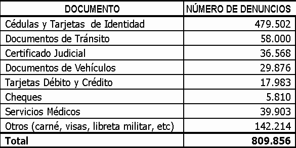 Fuente: POLICÍA METROPOLITANA DE BOGOTÁ, Radicado No 000281. Mayo de 2005. Esta situación contrasta claramente con el número de documentos recibidos en el mencionado banco, que en total suman 36.531 documentos (30.576 Cédulas, 3.247 Libretas Militares, 500 certificados judiciales, 138 licencias de tránsito, 1934 licencias de conducción, 72 tarjetas profesionales y 64 pasaportes)5. Por este motivo, es frecuente encontrar en las respectivas entidades, una gran cantidad de solicitudes que naturalmente, causan represamiento e ineficacia en el proceso normal de producción de los de documentos, pues se requieren mayores esfuerzos en términos de trámites y tiempo. De acuerdo con la Secretaría de Tránsito y Transporte, de enero de 2000 a abril de 2005, se han expedido 24.608 Licencias de Conducción por motivo de pérdida o robo.6 Aunque el Departamento Administrativo de Seguridad DAS, no expide duplicados del Certificado Judicial, si es importante mencionar que en promedio, anualmente esta entidad expide 1.500.000 certificados a nivel nacional, lo cual representa una suma aproximada de $43.000 millones de pesos.7 Cabe resaltar que además de las consideraciones expuestas la expedición de duplicados, conlleva un componente financiero, tanto para el Estado como para los ciudadanos. No podemos desconocer que la Policía Metropolitana de Bogotá ha hecho un avance importante para resolver esta problemática, al disponer un Banco de Documentos Extraviados, y un link en su página web para consultar si un determinado documento se encuentra allí. A pesar de ello, muchas personas que extravían sus documentos no los hallan en el mencionado banco, pues es poco usual que quien los encuentre los lleve hasta ese lugar, dados los gastos y el tiempo que esto les representaría; y cuando los han llevado, es por razón de alguna diligencia cercana al lugar, lo cual en la mayoría de las veces, ya es tarde para quien los extravió, pues la necesidad de los documentos, le ha obligado a solicitarlos nuevamente, ante las entidades correspondientes. Otro aspecto que dificulta la recepción y entrega de documentos extraviados en el mencionado banco, tiene que ver con la falta de información de los ciudadanos sobre su existencia y ubicación8, por lo cual se hace necesario diseñar una estrategia de divulgación sobre el mismo, pues si bien, en el banco se recibe un importante número de documentos por parte de los ciudadanos, y de algunos lugares públicos, no hay una estrategia para su efectivo reclamo. Por todo lo anterior, presentamos ante el Honorable Concejo de Bogotá la presente iniciativa, que tiene como objetivo principal la creación del Sistema Distrital para la Recepción y Entrega de Documentos de Identificación Extraviados, a cargo de la Policía Metropolitana de Bogotá, en coordinación con la Secretaría de Gobierno Distrital, teniendo en cuenta que una de las funciones de esta última, es garantizar la protección a las personas en sus derechos civiles y garantías sociales, conforme a la Constitución Política y a las leyes. El proyecto vincula el Banco de Documentos que actualmente existe en Bogotá, a una red de puntos para la recepción de los mismos, con el fin de facilitar su entrega y reclamo por parte de las personas. Se propone que los puntos de recepción sean entidades distritales reconocidas y de alta afluencia; así como entidades privadas que quieran vincularse de manera voluntaria al sistema. Estos enviarán semanalmente, al Banco Distrital, el listado de los documentos extraviados que hayan recepcionado, a fin de alimentar rápidamente, la base de datos de la Policía Metropolitana de Bogotá, para su posterior consulta por parte de los interesados. Asimismo, se plantea la realización de campañas orientadas a dar a conocer el Sistema, promover la activa participación de la ciudadanía, y realizar entregas masivas de documentos. Un aspecto relevante dentro de la iniciativa es el reconocimiento de "ciudadano solidario" para todas las personas que entreguen documentos extraviados, ya sea en las campañas masivas, en los puntos de recepción, o en el Banco de Documentos. Esto con el fin de generar un estímulo para promover la participación activa de la ciudadanía dentro del proceso. CONSTITUCIONALIDAD Y LEGALIDAD Constitución Política Artículo 1º, "Colombia es un Estado social de derecho, organizado en forma de República unitaria, descentralizada, con autonomía de sus entidades territoriales, democrática, participativa y pluralista, fundada en el respeto de la dignidad humana, en el trabajo y la solidaridad de las personas que la integran y en la prevalencia del interés general." Artículo 95, ". 2. Obrar conforme al principio de solidaridad social, respondiendo con acciones humanitarias ante situaciones que pongan en peligro la vida o la salud de las personas; ." Artículo 209, "La función administrativa está al servicio de los intereses generales y se desarrolla con fundamento en los principios de igualdad, moralidad, eficacia, economía, celeridad, imparcialidad y publicidad, mediante la descentralización, la delegación y la desconcentración de funciones. Las autoridades administrativas deben coordinar sus actuaciones para el adecuado cumplimiento de los fines del Estado. La administración pública, en todos sus órdenes, tendrá un control interno que se ejercerá en los términos que señale la ley." Decretos Decreto 777 de 1988. "Por el cual se dictan normas sobre clasificación, ditribución y competencia de las inspecciones de policía del Distrito Especial de Bogotá y se establecen otras disposiciones." Artículo 7º, "Los inspectores de Policía y los Corregidores del Distrito expedirán constancias por el extravío de documentos de identificación ocurridos dentro del territorio del Distrito Especial de Bogotá, sin que la prestación de éste servicio genere costo alguno al interesado." Decreto Distrital 367 DE 2001. "Por el cual se modi