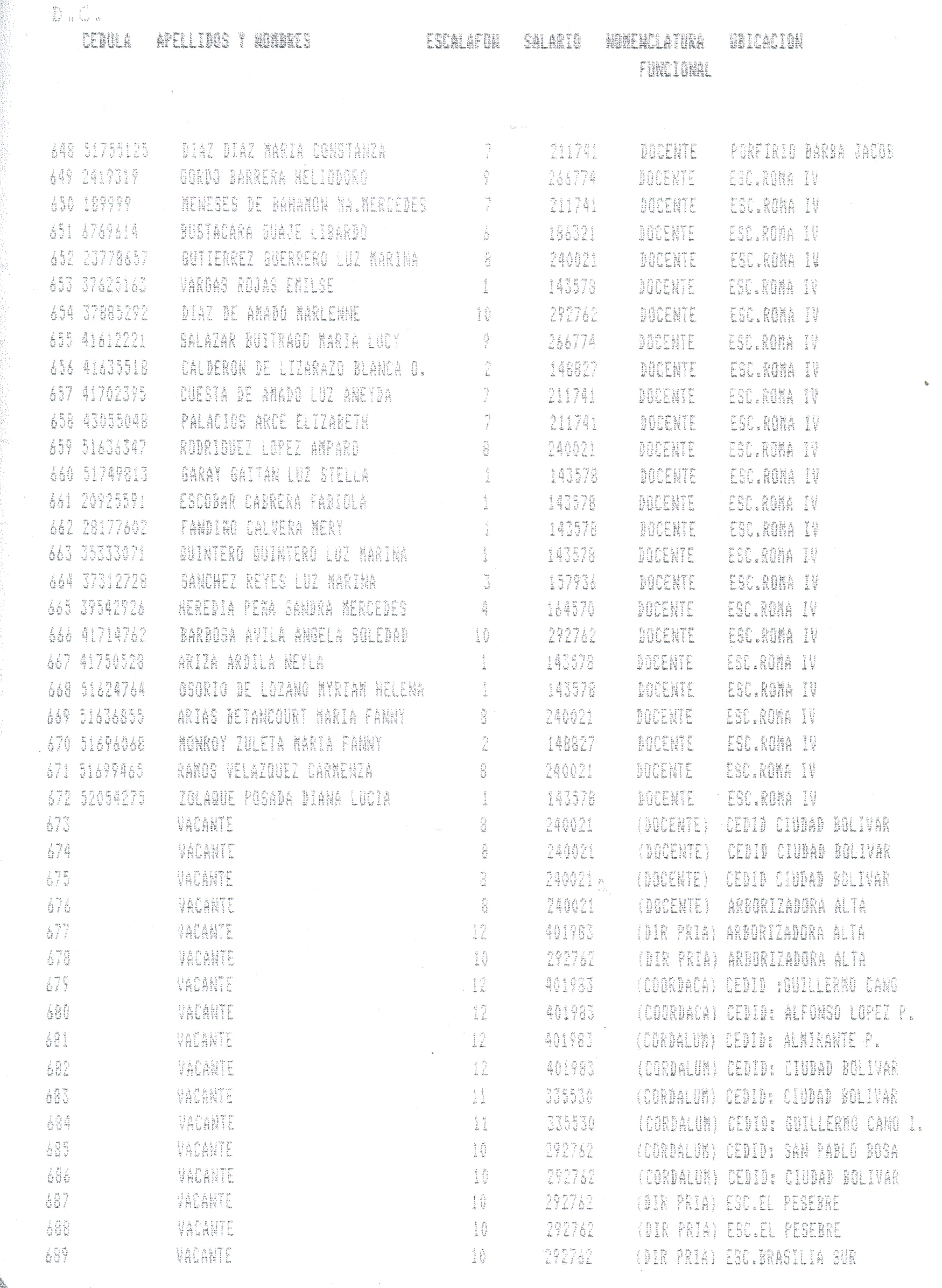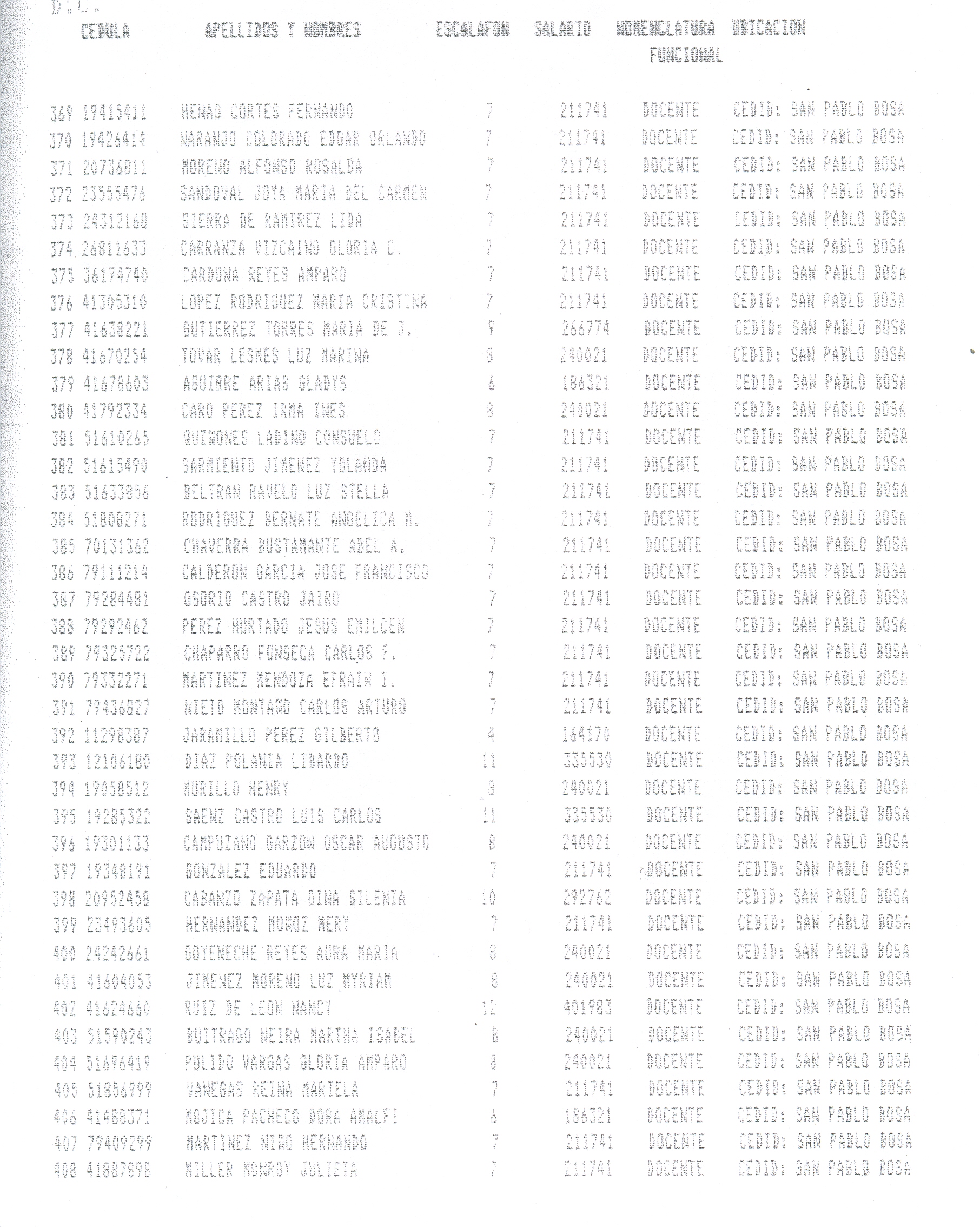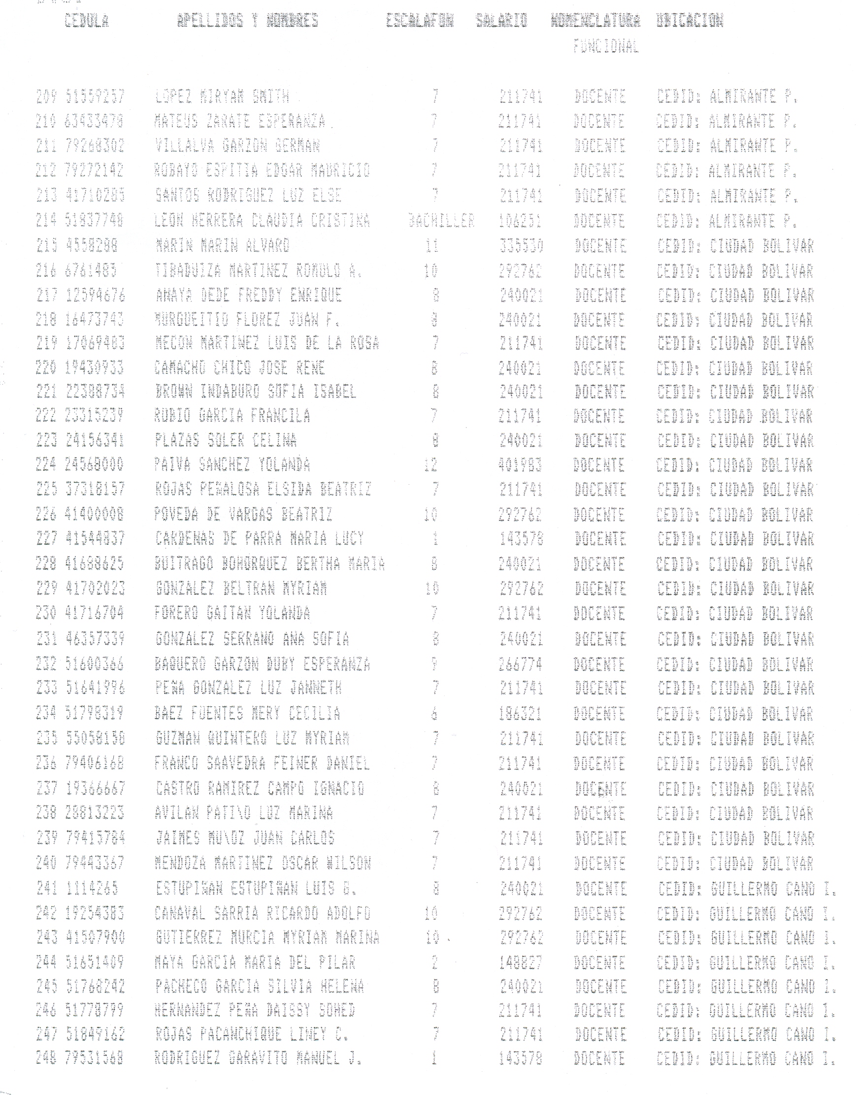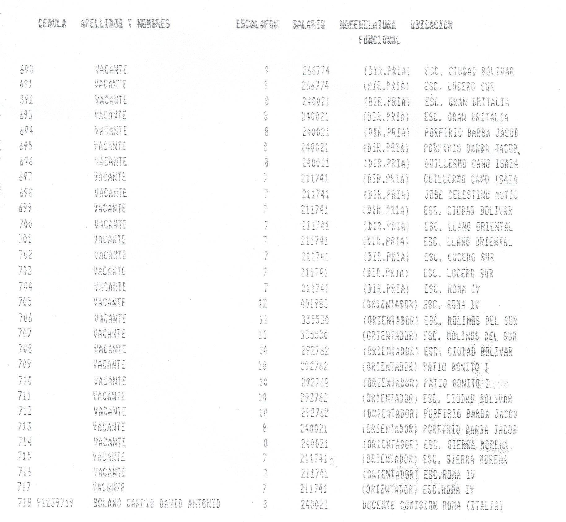ARTÍCULO 1°. Incorporar a la Planta Docente Distrital de la Secretaría de Educación de Santafé de Bogotá D.C., 718 cargos docentes correspondientes al Programa Ciudad Bolívar, Subprograma Educación, que se relacionan a continuación, a partir de la fecha de expedición del presente Decreto y así dar continuidad a los objetivos del Programa.