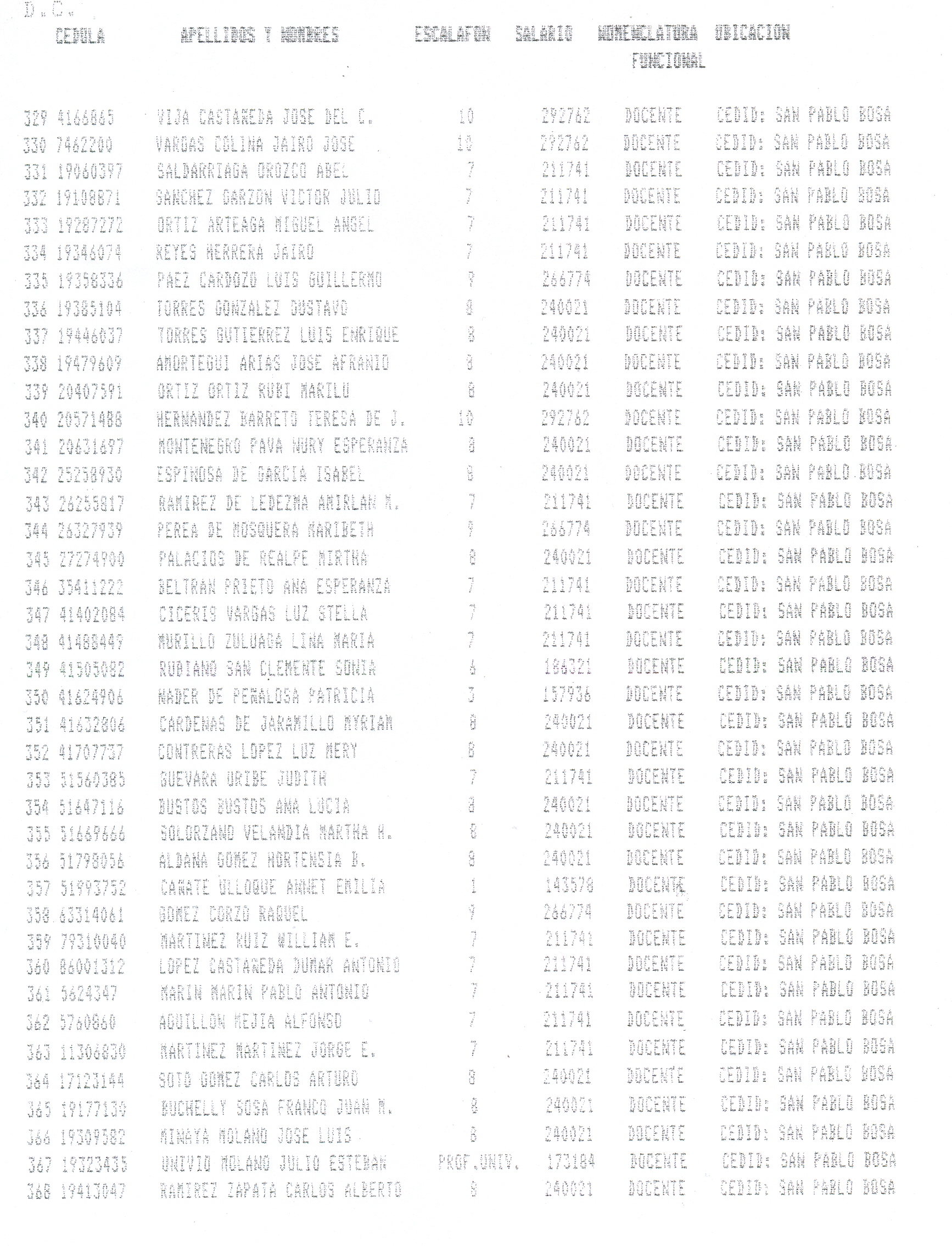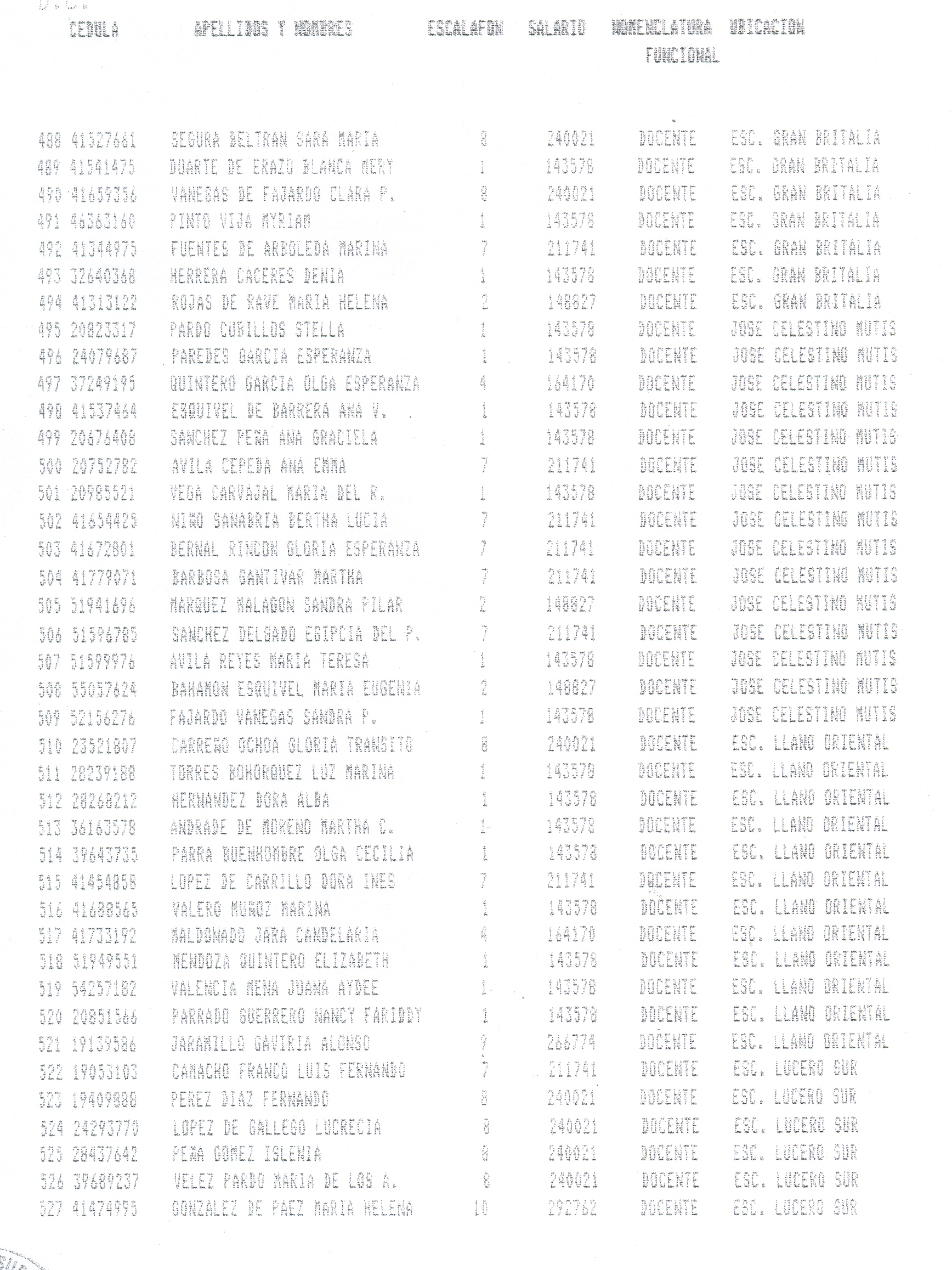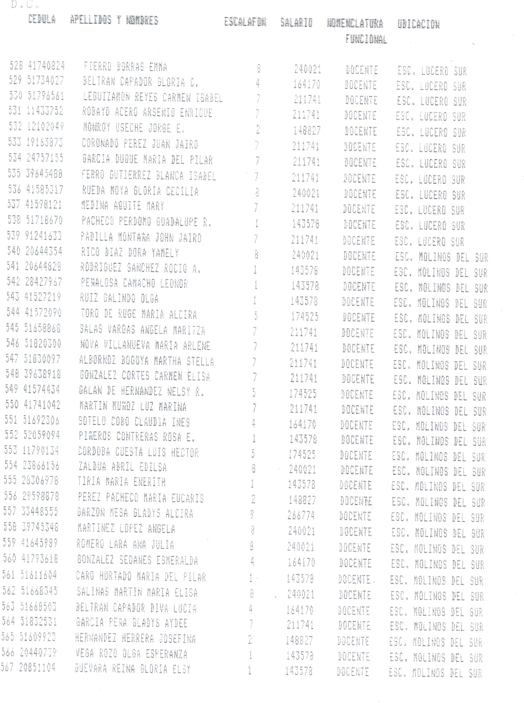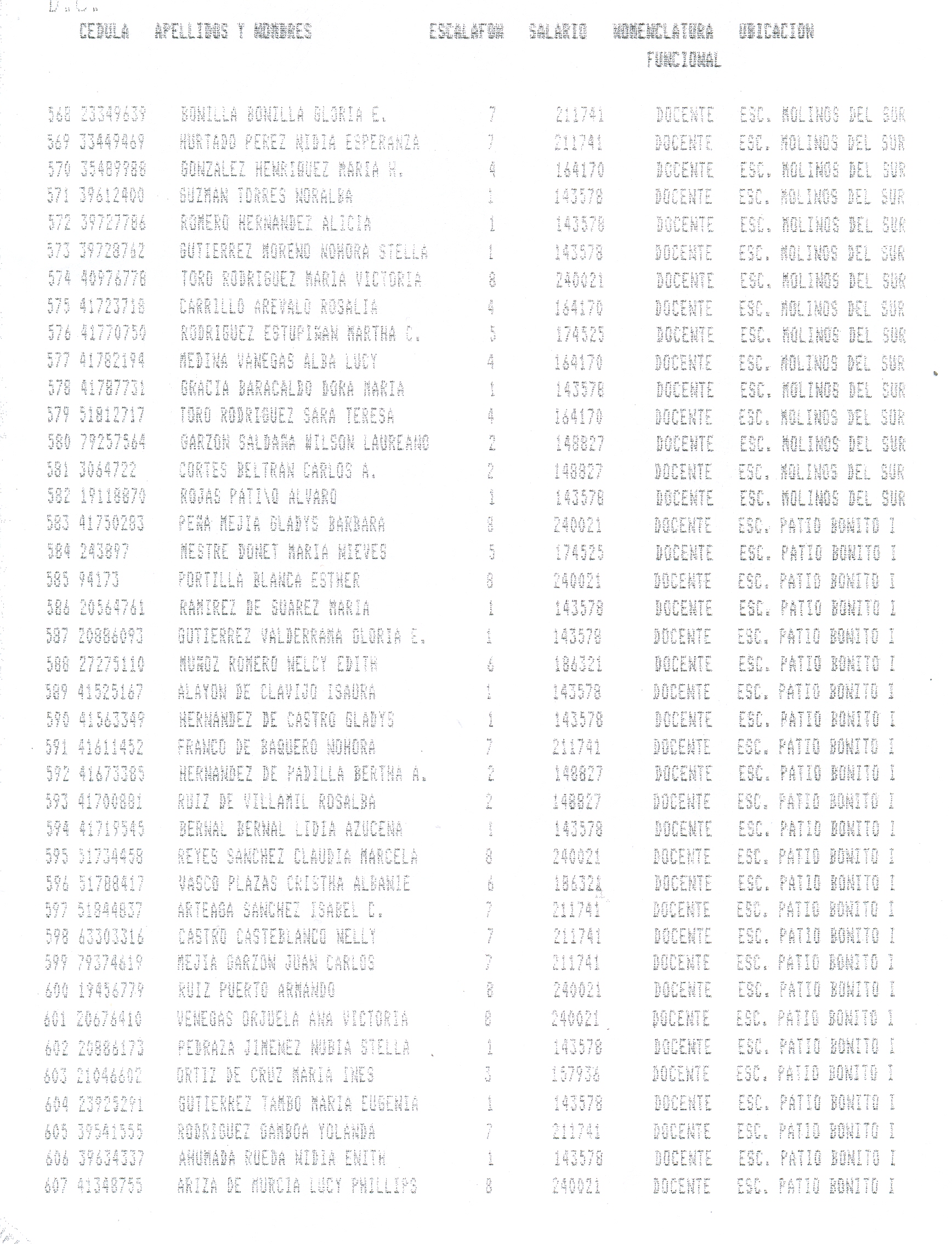 ARTÍCULO 1°. Incorporar a la Planta Docente Distrital de la Secretaría de Educación de Santafé de Bogotá D.C., 718 cargos docentes correspondientes al Programa Ciudad Bolívar, Subprograma Educación, que se relacionan a continuación, a partir de la fecha de expedición del presente Decreto y así dar continuidad a los objetivos del Programa.
