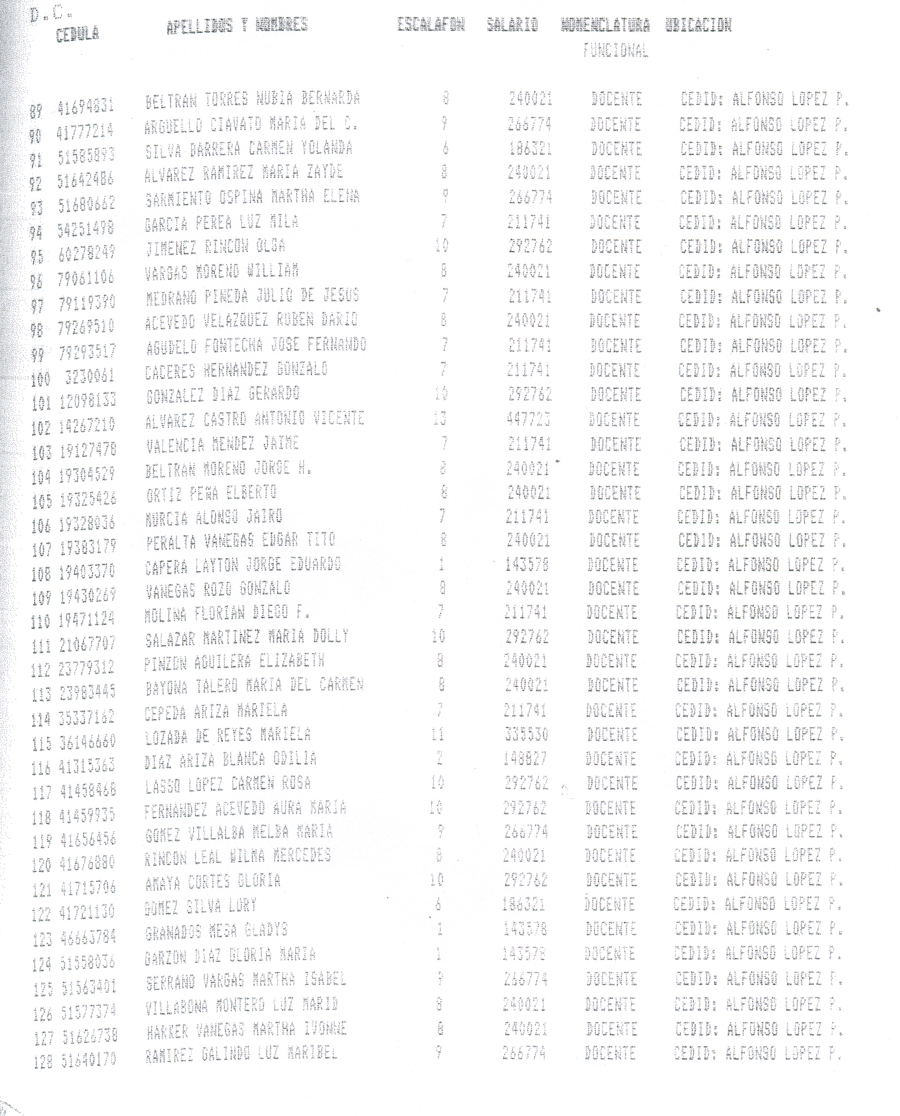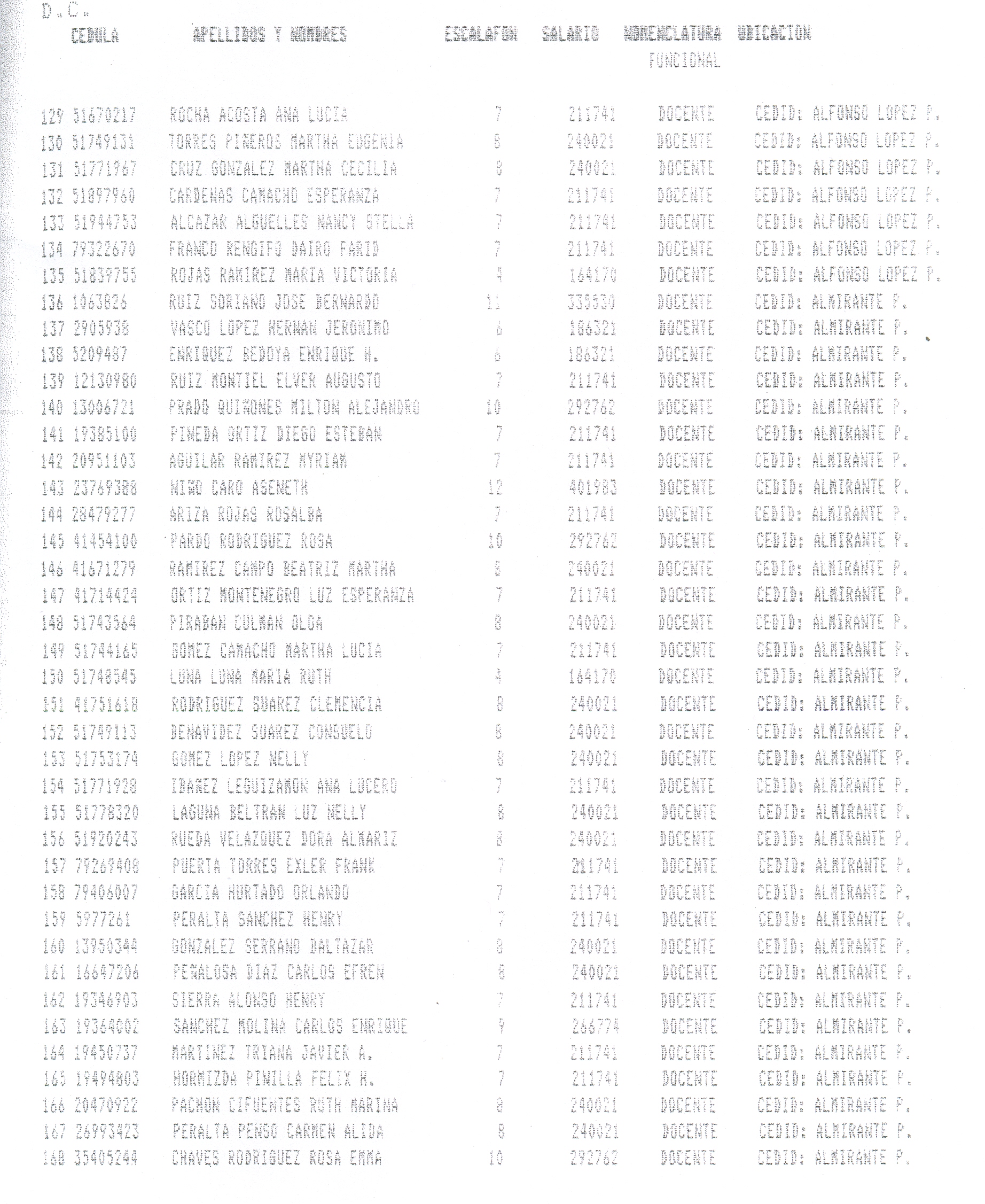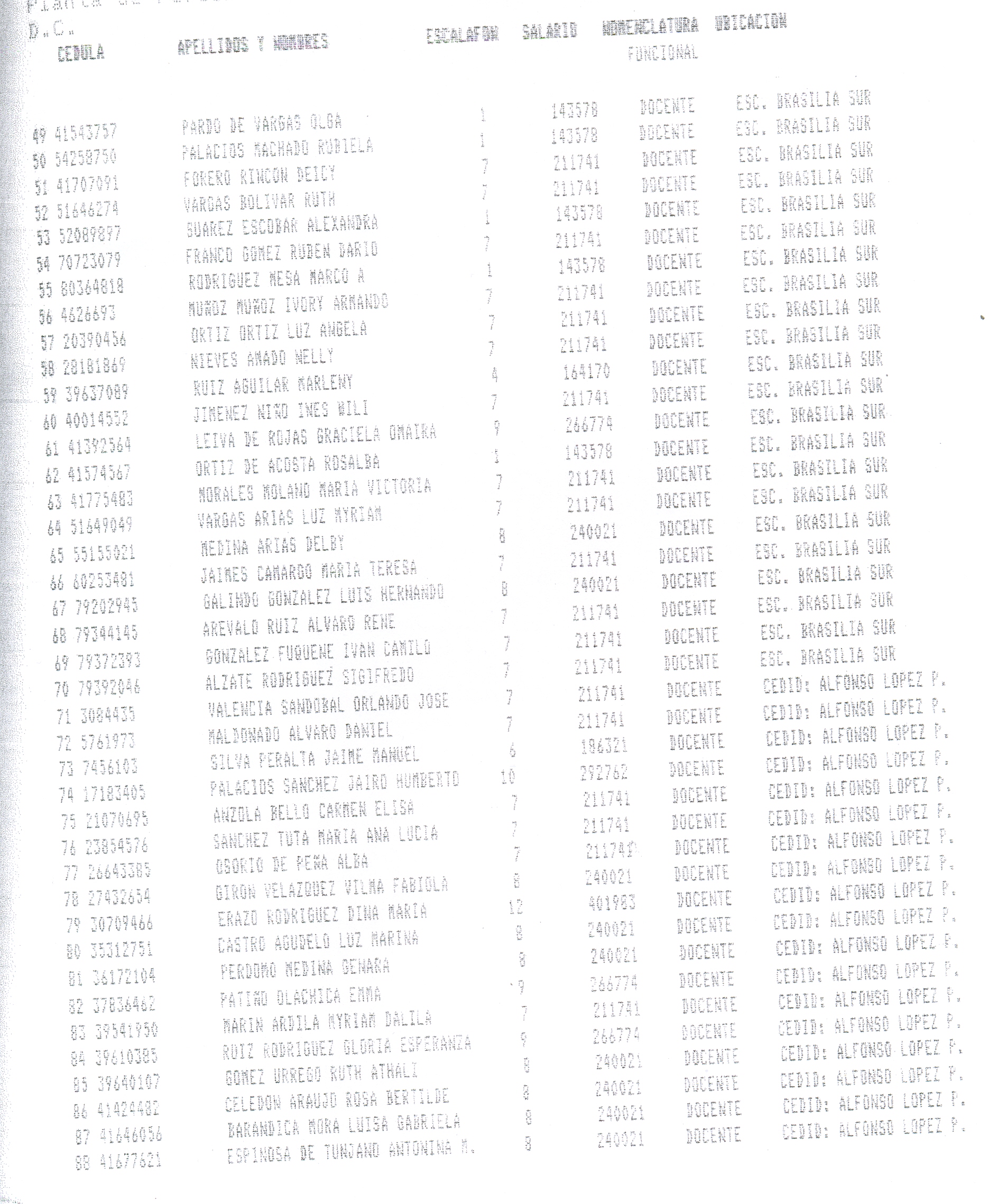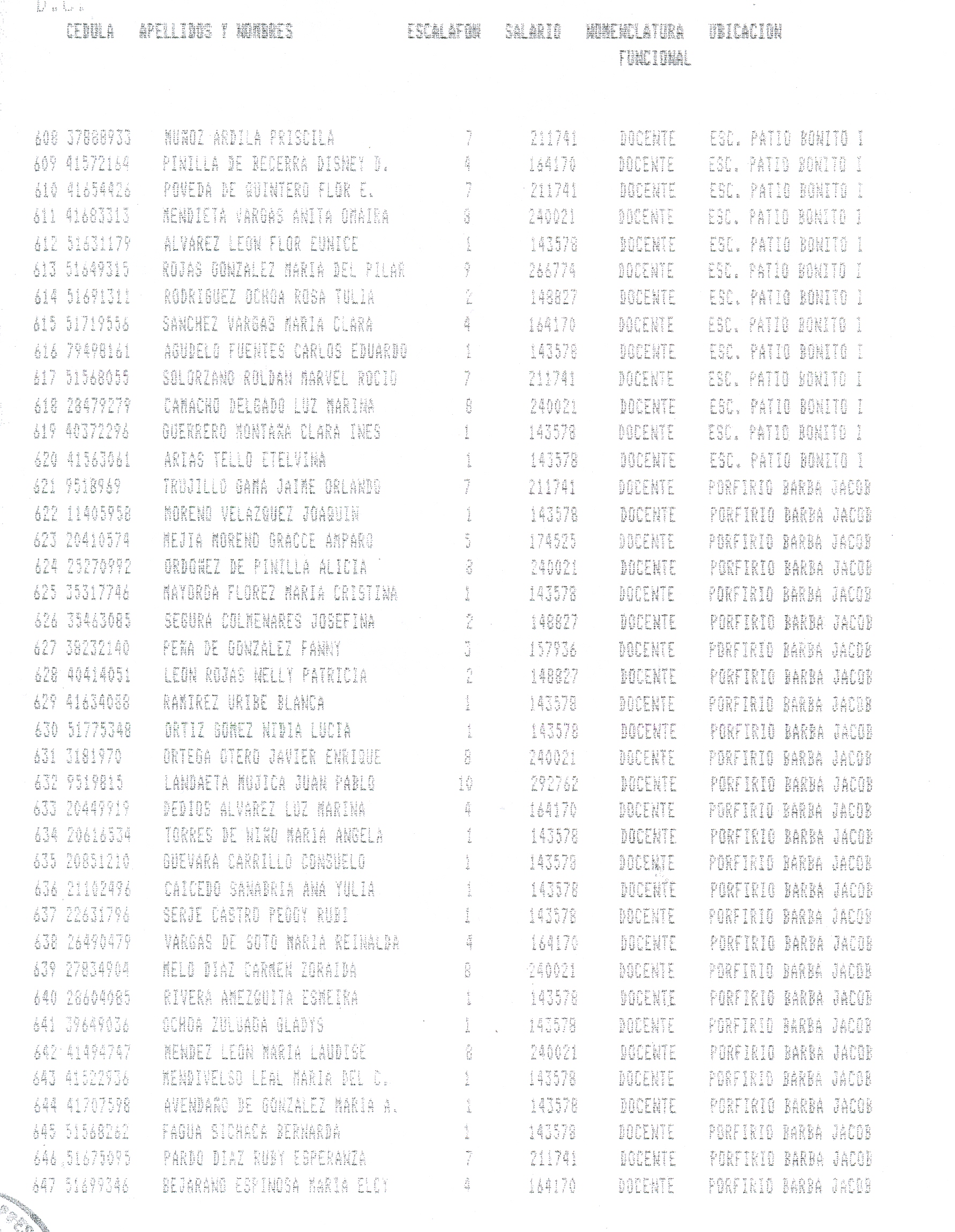 ARTÍCULO 1°. Incorporar a la Planta Docente Distrital de la Secretaría de Educación de Santafé de Bogotá D.C., 718 cargos docentes correspondientes al Programa Ciudad Bolívar, Subprograma Educación, que se relacionan a continuación, a partir de la fecha de expedición del presente Decreto y así dar continuidad a los objetivos del Programa.