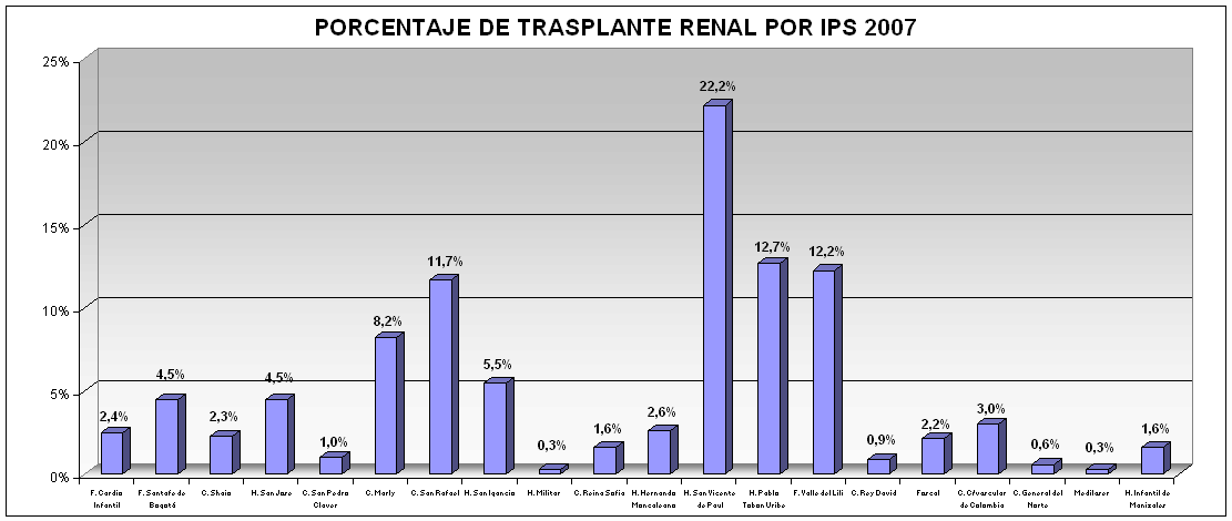 De los hospitales pertenecientes a la red Distrital de mediana y alta complejidad están en capacidad de coordinar adecuadamente la extracción de órganos dos tipos de hospitales los de alta complejidad, entre los que se encuentran: El Tunal, Simón Bolívar, Kennedy, La Victoria y Santa Clara. Y los de mediana complejidad: Suba, San Blas. Meissen, Tunjuelito, Engativá, Fontibón, Centro Oriente y Bosa. Hoy en el distrito capital se pierde un número muy importante de donantes ya que al llegar a los centros asistenciales – excepto los antes enunciados- no son detectados como tales y mueren sin que se haga ninguna gestión con miras a trasplante. La ciudad se beneficiaría de tener un sistema sólido, integrado, con la participación de los diferentes actores del sector con el objetivo de beneficiar a quienes requieren el trasplante como solución de vida. Tabla 2.