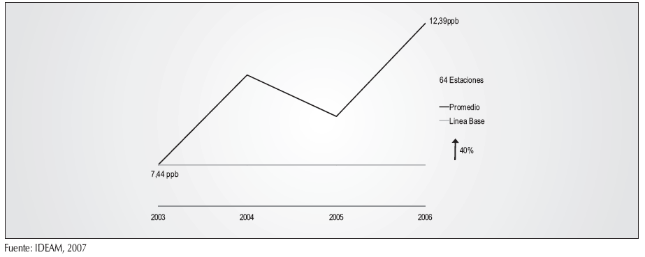 Para el caso urbano de la ciudad de Bogotá, el análisis de información2 suministrado por el DAMA (Departamento Administrativo del Medio Ambiente) en el Seminario Taller sobre Calidad del Aire, dejó entre ver que un 65% de las emisiones de gases contaminantes que se arrojan a la atmósfera de la ciudad, lo genera el sector vehicular, mientras que el restante 35% se lo añaden a fuentes fijas, siendo el monóxido de carbono el gas contaminante generado por fuentes móviles con mayor aporte, presentado un valor del 99.39%, seguido por los óxidos de nitrógeno (NOx) con un valor del 83%; la parte restante, es decir, el 0.61% de aportes de CO y de NOx que lo generan las fuentes fijas que se ubican en la ciudad. Lo anterior, trae consecuencias en la salud de los bogotanos ya que la inhalación de dichos gases suele producir enfermedades que atacan los sistemas circulatorio, respiratorio y visual de los habitantes de la ciudad (Ruiz, 2000)3. El Ministerio del Medio Ambiente reveló al Diario del Espectador en la Sección Ambiental del 26 de febrero de 2000, que Bogotá, es la ciudad con el índice de contaminación más alto en Colombia y que el 70% de esta problemática es originada por el Monóxido de Carbono que producen los automóviles, sugiriendo la urgente necesidad de contar con mecanismos de control de este tipo de contaminación4. Por otra parte, los seis contaminantes, criterio que mide la Red de Monitoreo de la Calidad del Aire de Bogotá son: PST (partículas suspendidas totales), Monóxido de carbono (CO), Dióxido de Azufre (SO 2), Óxidos de Nitrógeno (NO X), ozono (O3), Material particulado fino (PM2.5) y Material particulado fracción respirable (PM10). Siendo este último el que presenta mayor excedencia en la ciudad. PM10, son partículas minúsculas que pueden ingresar al tracto respiratorio y producir daños en los tejidos y órganos que lo conforman o servir como vehículo para bacterias y virus diversos. Según la Red, durante estos 10 años se ha observado una tendencia creciente en la concentración de material particulado (PM10). En 2006, este contaminante se redujo con respecto a 2005 en 8.5%. Esta diferencia se presenta de acuerdo con el promedio anual reportado para el año 2005, equivalente a 74.5 µg/m3 respecto a 68.1 µg/m3 registrados para el año 2006. En el primer semestre de 2007, la concentración promedio anual del PM10 ha aumentado a 72 µg/m3, debido principalmente a altas concentraciones registradas en febrero y marzo, influenciadas por condiciones meteorológicas que se presentaron y a los incendios forestales ocurridos en la ciudad. De acuerdo con el decreto 601/06 del Ministerio de Ambiente, la norma anual para este contaminante es de 70 microgramos por metro cúbico. Un documento producido por la Contraloría General de la República, estableció que la realidad que vive la capital en cuanto a las políticas de calidad de combustible, contrastan con los requerimientos establecidos por la norma nacional de la calidad del aire (Decreto 979 de 2006), en donde se incluye la obligatoriedad de las administraciones locales de implementar "planes de contingencia" que hagan frente al problema de contaminación en sus regiones. Sin embargo, varias localidades de Bogotá deben clasificarse como "zonas de no cumplimiento". Los sectores más afectados por la contaminación atmosférica en la ciudad, son el centro y sur occidental, correspondientes a las localidades de ciudad Bolívar, Kennedy, Puente Aranda y Fontibón, según lo indica el DAMA mediante el boletín de prensa de la campaña "Bogotá Respira"- 2006. Es importante señalar, que en virtud de lo dispuesto en el Protocolo de Kyoto, todos los países están obligados a reducir la emisión de Gases de Efecto Invernadero, pero además se estimula la baja emisión de los mismos a través de incentivos económicos entregados a los países, y se establecen los bonos de carbono, los cuales son un mecanismo internacional de descontaminación para reducir las emisiones contaminantes al medio ambiente. Con estos, se considera el derecho a contaminar como un bien canjeable y con un precio establecido en el mercado. De esta forma una reducción de la contaminación atmosférica puede repercutir en los ingresos del Estado, específicamente para las arcas bogotanas5. En ese sentido, la Unión Europea, específicamente los países que no alcancen a cumplir con los topes de reducción de contaminación exigidos por el Protocolo de Kyoto citado, se han comprometido de manera directa con la ciudad de Bogotá a pagarle una suma cercana a nueve euros por cada tonelada de emisiones de carbono que deje de producir la ciudad. Esto representaría una suma importante, toda vez que el propósito de la administración distrital es reducir dentro de los próximos seis años 1.7 billones de toneladas de contaminación ambiental, lo cual haría a la ciudad acreedora de aproximadamente 12 millones de euros por tal concepto. En el ámbito nacional, este proyecto de Acuerdo ha sido formulado en concordancia con políticas de Estado, tales como el documento Conpes 3344 de marzo de 2005, donde se establecen los lineamientos para la formulación de una política pública estatal en materia de prevención y control de la contaminación ambiental del aire en el largo plazo6. Así mismo, el Documento CONPES 3244 de 2003, el Decreto 802 de 2004 y la resolución 018 de 2004, con los cuales el Ministerio de Minas y Energía y la Comisión de regulación de Energía y Gas autorizaron e hicieron viable el otorgamiento de descuentos a los comercializadores de GNV (Gas Natural Vehicular). A las anteriores disposiciones legales que permiten al distribuidor local de Gas otorgar descuentos en los cargos por distribución, se suman los esfuerzos de los productores y transportadores que se han vinculado para ampliar los incentivos que diseñaron para que la reconversión sea mas atractiva al sector transporte. Según datos del citado documento 