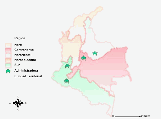 Como se puede apreciar el escenario ideal está compuesto por 60 (27,8% ) unidades territoriales. De estas el 32,7% son 19 localidades de Bogotá; 26,2% municipios en el departamento del Meta (Barranca de Upia, Castilla La Nueva, Cumaral, El Castillo, El Dorado, Granada, Guamal, La Macarena, Lejanías, Mesetas, Puerto Gaitán, Puerto Lleras, San Carlos De Guaroa, San Juan De Arama, San Martín y, Vistahermosa). El 9,8% municipios en el departamento del Cundinamarca (Guayabetal, Gutiérrez, Jerusalén, San Antonio Del Tequendama). El 6,56% respectivamente en Huila (Algeciras, Campoalegre, Hobo, Rivera, Villavieja y Yaguará), Guaviare (Calamar, El Retorno, Miraflores y San José Del Guaviare) y Vichada (Cumaribo, La Primavera, Puerto Carreño y Santa Rosalía). Y, el 3,2% en Vaupés (Mitú). El escenario ideal tiene el mayor número de población ubicada en el área urbana. Está conformada por los 7.155.052 habitantes de Bogotá y 555.760 habitantes del resto de departamentos de la región, con un promedio por territorio de 281.476 habitantes. Cuenta con 3.094.735 personas potenciales beneficiarias del régimen subsidiado, de las cuales el 11% a la fecha no tienen financiado su cupo de afiliación. En promedio existe una hora por carretera entre los municipios de este escenario a la ciudad capital, que ofrece servicios de atención en salud de segundo,tercer y cuarto nivel y cuenta con 43 EPS (subsidiada y contributivo) operando (cuadro 22 y 23). El indice de calidad de vida señala que la población de este escenario concentra los mayores niveles de desarrollo social, pero con riesgo proximal en salud de orden primario, secundario y terciario. Además se encuentra que el índice de eficiencia físcal y el desarrollo de la política en salud de este escenario es más eficaz. Lo anterior indica que este escenario es ideal para iniciar la etapa de expansión de la EPS-S, toda vez que existen condiciones estructurales, intermediarias que pueden facilitar el mejoramiento de los determinantes proximales de manera eficaz y eficiente a través de intervenciones de promoción de la salud, preventivas y de atención de daños. Las 58 (27%) unidades territoriales que conforman el escenario de concentración de riesgo estrátegico, están ubicados en tres departamentos, así: 55% en Cundinamarca; 32,8% en Huila y 12% en Meta (Ver Anexo 2). Está compuesta por 882.986 habitantes. El 86% del total de población es potencial beneficiaria del régimen subsidiado en salud y cuenta con un 78% de cupos financiados en la actualidad. Este escenario está influenciado por una mayor dispersión poblacional, una mayor distancia con la ciudad capital (136 Km), una menor respuesta institucional (indice desempeño fiscal 61, cobertura PAI 83%), que afectan la respuesta a los desafíos del perfil de riesgo biológico de primero y segundo orden. Por ello, será necesario diseñar un modelo que involucre procesos de atención primaria extramural en las zonas que tienen menor cobretura de servicios de atención de primer nivel (cuadro 22 y 23). El escenario de riesgo estrátegico + operativo, equivalentes al 24% (52) de las unidades territoriales están ubicadas en dos departamentos, estos son: 88% en Cundinamarca y 9,8% en Huila (Ver Anexo 3). está conformada por 1.555.862 habitantes, con un promedio de 77.517 habitantes por unidad territorial. Del total de población el 49% está ubicado en el área urbana. El 72% de la población es potencial beneficiaria del régimen subsidiado en salud y solo el 11% falta por asegurar la financiación de cupos. El índice de desempeño fiscal está alrededor del 64%. Cuenta con una red de 26 EPS (subsidiado y contributivo) y la mayor distancia que existe entre la ciudad capital al municipio más lejando son 2 horas por carretera. En este escenario la respuesta de atención y calidad de los servicios es más baja. Por ejemplo, la cobertura de vacunación es del 81%, con un riesgo de morir en la infancia de 14 por 1000 Nv. La tasa promedio de enfermedades crónicas es alta, tienen 2.993 casos de hipertensión arterial; 1.303 casos de diabetes y 488 personas diabéticas susceptibles de diálisis peritoneal (cuadro 22 y 23). El escenario de riesgo operativo, abarca 31 (14%) territorios ubicados en tres departamentos, estos son: 7% en Cundinamarca; 16% en Huila y 9,7% en Meta (Ver Anexo 4). Tiene concentrada 1.372.159 personas. De este total, el 49% está ubicado en el área urbana. El 72% del total de población puede acceder al regimen subsidado y actualmente 61% tienen financiado sus cupos de afiliación. El promedio del índice de calidad de vida es de 69, con un mínimo de 59. Este escenario, se ve influenciado principalmente por la respuesta institucional de la secretarías de salud, reflejada en un bajo índice de desempeño fiscal, con asignación de recursos SGP para atención de eventos no POS en salud que no está compensada, la respuesta intitucional a la politica de salud es un riesgo de gran importancia para mantener o minimizar la concentración de riesgo biológico de primer y segundo orden (cuadro 22 y 23). El escenario de riesgo empresarial está localizado en cuatro departamentos y representa el 14% de los territorios, son: 41% Vaupés; 25% en Meta; 16,7% en Huila y Cundinamarca (Ver Anexo 5). Este escenario está influenciado principalmente por los altos niveles de pobreza, por la dispersión poblacional, el difícil acceso geográfico de las comunidades étnicas a las cabeceras municipales en donde está ubicada la red de servicios, la baja oferta de EPS, y la alta concentración de riesgo biológico de segundo y tercer orden. Para mitigar estos riesgos es necesario hacerlos bajo un modelo de salud diferenciado a la cultura, con puesto de atención de primer nivel móviles (APS) y disposición de unidades básicas de manejo de signos y síntomas de enfermedades prevalentes por lideres comunitarios y auxilares en salud pública. Conclusiones del estudio de entorn