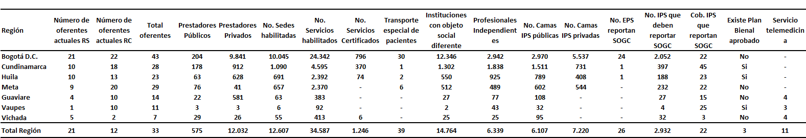 Fuente: Superintendencia Nacional de Salud. Octubre de 2007 En la base de datos de registros de prestadores del SOGCS del Ministerio de Protección Social se encontró que existen aproximadamente 12.607 prestadores en la región centro oriente. De estos 4,5% son públicos y 95,5% privados (Cuadro 15). Cuadro 15. Características de los prestadores registrados Región Centro Oriental RS, 2008