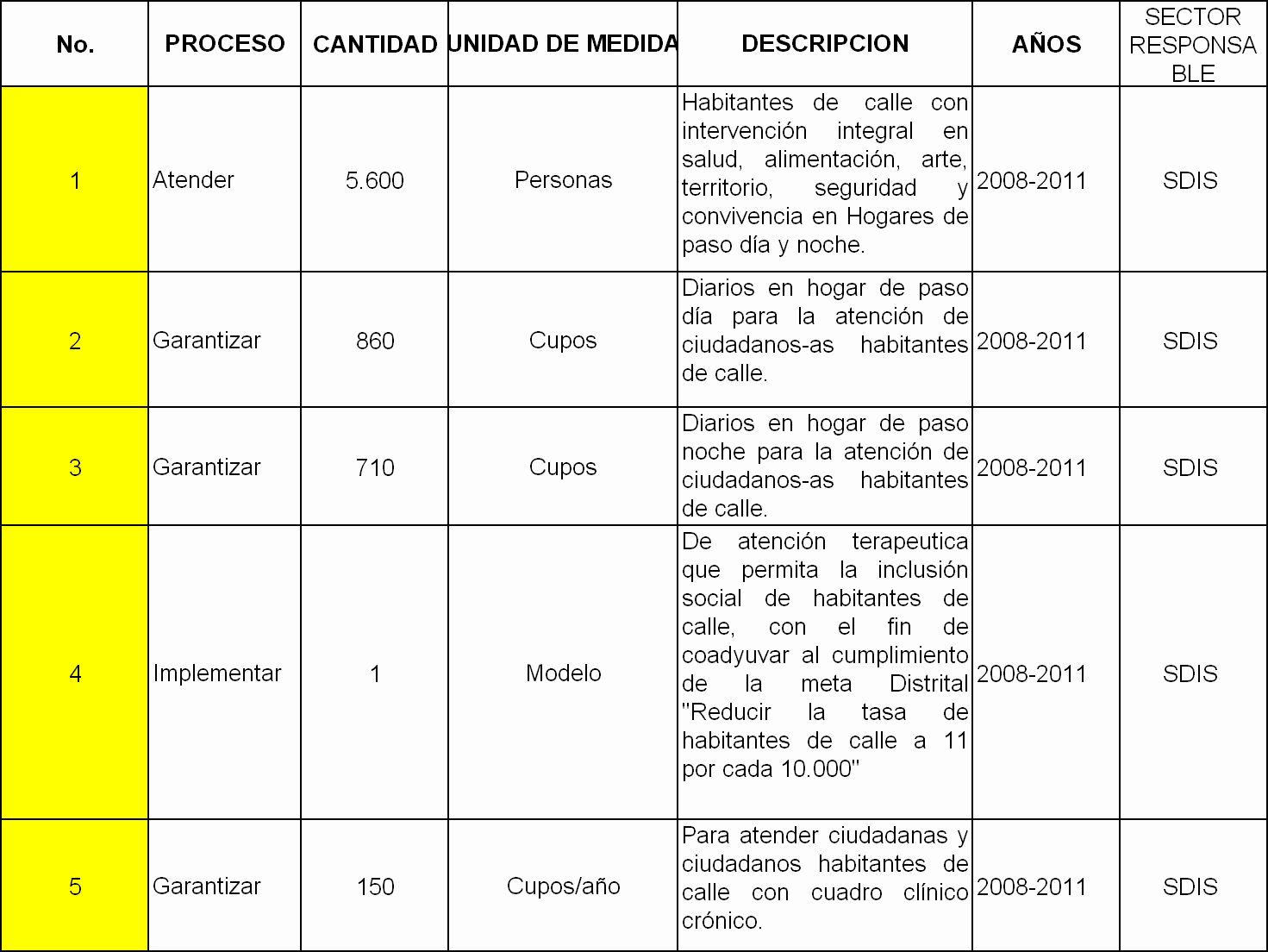Sobre esta estimación es de resaltar que las metas no dan referencia de la línea de base, para verificar el avance o estancamiento en los niveles de atención existentes con antelación y tampoco señalan las nuevas formas de servicios a prestar por parte de la administración. Por otra parte, tampoco estiman como se atenderá directamente a la demanda ciudadana. Es decir, no hay una correlación entre el número de personas que efectivamente requeriría esta atención y su asignación. La propuesta frente a ello, es justamente articular la política social con indicadores de demanda, tal como lo imponen los estándares internacionales de medición de las políticas sociales. Por otra parte, y con ello culmina este segundo grupo de consideraciones, es cuando menos llamativo que la Administración distrital haya decidido integrar en un solo proyecto de inversión denominado adultez con oportunidades, toda la acción frente a personas adultas, incorporando en una sola bolsa los recursos dirigidos, por ejemplo, a ciudadanos y ciudadanas con discapacidad cognitiva, a personas en prostitución y a habitantes de la calle. La política de las administraciones anteriores, siempre distinguió presupuestalmente estas intervenciones, lo que facilitaba su seguimiento y medición. La integración actual no sólo hace más confusa la destinación presupuestal, sino que también deja dudas acerca de la especialidad de las intervenciones que se realizarán con respecto a cada tipo de problemática. Lo ideal, entonces, sería conjugar la precisión de las metas con la claridad de las asignaciones presupuestales. 3. El análisis sobre referentes de destinación y ejecución de los recursos de la Ciudad en esta materia. Finalmente, se presentan algunos referentes sobre destinación y ejecución de los recursos de la Ciudad en esta materia. Lo anterior, solamente en cuanto a lo que se refleja en el presupuesto aprobado para 2008, al amparo del Plan de Desarrollo "Bogotá sin Indiferencia", ya que como se explicó atrás el diseño presupuestal del Plan de Desarrollo "Bogotá Positiva", no permite identificar la asignación presupuestal para la atención a las personas habitantes de la calle. De los 13.1 billones de pesos del presupuesto 2008, al amparo del Plan de Desarrollo anterior, se asignaron 16.956’108.000 para el proyecto de inversión 7217, a cargo de la Secretaría de Integración Social, denominado "Atención Integral para la inclusión social de ciudadanos y ciudadanas habitantes de la calle, lo que equivale a una 772ava parte o un 0,12 por ciento del presupuesto total del Distrito. Por supuesto, en medio de las complejas problemáticas sociales, esta cifra no es muy diciente, pero al menos abría la puerta para efectuar análisis comparados y para determinar políticas específicas. Por el contrario, del proyecto Adultez con oportunidades sabemos que para el 2008, después de la armonización, le fueron asignados cerca de 15 mil millones de pesos, sin que sea factible conocer su destinación para cada tipo de problemática de las personas mayores de 18 años y menores de 60 en la Ciudad, y por ende, sin que pueda conocerse la inversión concreta para superar las condiciones que afrontan los habitantes de la calle. Para optimizar y asegurar mejores resultados en lo social y permitir el control ciudadano sobre los recursos dirigidos a una población que nos interesa a todos y a todas, sin dejar su atención como una solución dispersa, se hace indispensable la construcción de una "Política Publica para el (la) Habitante de Calle y en la Calle", convirtiendo esta herramienta en un generador de oportunidades con igualdad de condiciones para esta población que habita en las calles de Distrito Capital, priorizando en asegurar la inclusión social y económica, y especialmente garantizar la esperanza de vida para los más vulnerables, es decir los niños y niñas que hoy se encuentra viviendo en las calles de nuestra ciudad, para así asegurar su inclusión absoluta e irreversible a la sociedad Bogotana. CONSTITUCIONALIDAD Y LEGALIDAD CONSTITUCIÓN POLÍTICA ARTÍCULO 13, inciso 3º "El Estado protegerá especialmente a aquellas personas que por su condición económica, física o mental, se encuentren en circunstancia de debilidad manifiesta y sancionará los abusos o maltratos que contra ellas se cometan" ARTICULO 5º "El estado reconoce sin discriminación alguna, la primacía de los derechos inalienables de la persona y ampara a la familia como institución básica de la sociedad" ARTÍCULO 47º "El Estado adelantará una política de previsión, rehabilitación e integración social para los disminuidos físicos, sensoriales y psíquicos, a quienes se prestará la atención especializada que requieran" ARTÍCULO 46º "El Estado, la sociedad y la familia concurrirán para la protección y la asistencia de las personas de la tercera edad y promoverán su integración a la vida activa y comunitaria. El Estado les garantizará los servicios de la seguridad social integral y el subsidio alimentario en caso de indigencia." (Subrayado fuera de texto). ARTÍCULO 49º "La atención de la salud y el saneamiento ambiental son servicios públicos a cargo del Estado, Se garantiza a todas las personas el acceso a los servicios de promoción, protección y recuperación de la salud". ARTÍCULO 54º "Es obligación del Estado y de los empleadores ofrecer formación y habilitación profesional y técnica a quienes lo requieran. El Estado debe propiciar la ubicación laboral de las personas en edad de trabajar y garantizar a los minusválidos el derecho a un trabajo acorde con sus condiciones de salud" ARTÍCULO 350º "… En la distribución territorial del gasto público social se tendrá en cuenta el número de personas con necesidades básicas insatisfechas, la población, y la eficiencia fiscal y administrativa, según reglamentación que hará la ley. …" LEYES Ley 361 de 1997. Por medio de la cual se