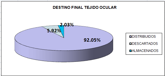 Como podemos apreciar en los cuadros y estadísticas antes enunciadas las cifras no resultan alarmantes, de hecho podemos asegurar que Bogotá tiene uno de los mejores comportamientos en cuanto a donación de órganos, pero en cuanto a tejidos la situación es preocupante. Entiéndase por tejidos -piel, válvulas cardiacas, corneas, huesos23 –. A continuación se presenta la situación actual de los tejidos en Bogotá. ORIGEN DEL TEJIDO OCULAR 2008