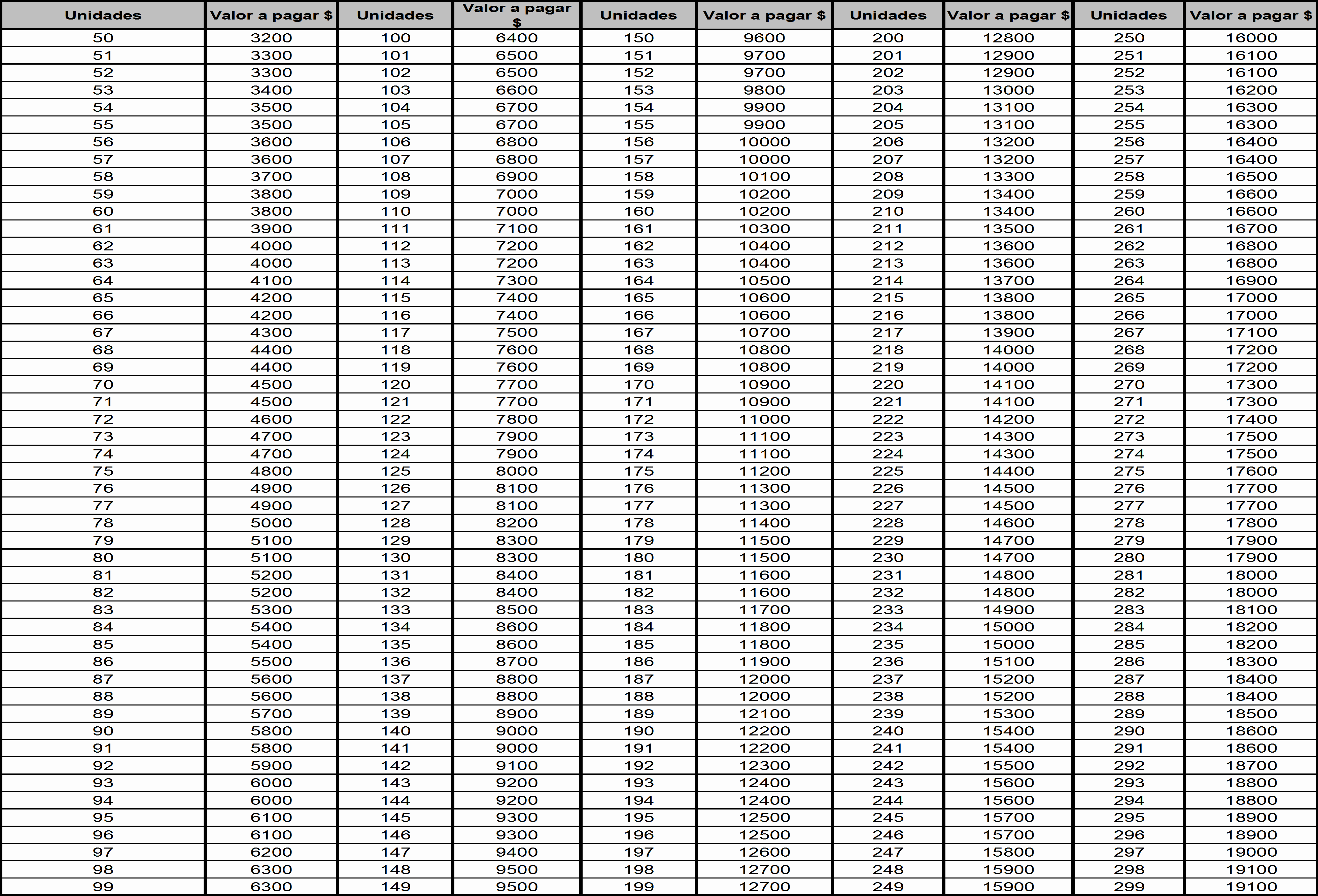 DECRETO 598 DE 2009 (Diciembre 30) Derogado por el art. 5, Decreto Distrital 545 de 2010 "Por el cual se fija la tarifa para el servicio de transporte público individual de pasajeros en vehículos clase taxi" EL ALCALDE MAYOR DE BOGOTÁ, D.C. En uso de sus facultades legales y en especial las conferidas por el literal c), del Artículo 1ro. del Decreto Nacional 80 de 1987, Artículo 30 de la Ley 336 de 1996, Decreto Nacional 2660 de 1998, Resolución Nacional No. 4350 de 1998 del Ministerio de Transporte, Resolución 392 de 1999 del Ministerio de Transporte, Decreto Distrital No. 315 de 2007 y, CONSIDERANDO: Que de conformidad con el artículo 30 de la Ley 336 de 1996, las autoridades competentes, según el caso, elaborarán los estudios de costos que servirán de base para el establecimiento de las tarifas, sin perjuicio de lo que estipulen los tratados, acuerdos, convenios, conferencias o prácticas internacionales sobre el régimen tarifario para un modo de transporte particular.Que le corresponde al Distrito Capital de Bogotá, organizar la actividad transportadora y tarifaria del Servicio Público de Transporte Terrestre Automotor Individual de pasajeros en el territorio de su jurisdicción. Que mediante Decreto 2660 del 29 de diciembre de 1998, el gobierno nacional señaló los criterios a tener en cuenta para la fijación de tarifas de servicio de transporte público municipal, distrital y/o metropolitano de pasajeros y/o mixto. Que mediante resoluciones No. 4350 de 1998 y No. 392 de 1999, el Ministerio de Transporte estableció la metodología para la elaboración de los estudios de costos que sirven de base para la fijación de las tarifas de transporte público municipal distrital y/o metropolitano de pasajeros y/o mixto. Que mediante Decreto Distrital No. 315 de 2007, se estableció el modelo de gestión para el servicio público individual de pasajeros, y se señalaron los criterios a tener en cuenta para la actualización de las tarifas. Que conforme al Decreto Distrital No. 208 de 2008, el valor de la unidad es la suma de sesenta y dos pesos moneda corriente ($62.00). Que la Secretaría Distrital de Movilidad a través de la Subsecretaría de Política Sectorial, Dirección de Estudios Sectoriales y de Servicios, elaboró el documento DESS-PM04-PR01-003, el cual dio como resultado una variación en la tarifa técnica de dos pesos y treinta y cinco centavos ($2.35), por lo que debe reajustarse el valor de la tarifa en la suma de dos pesos ($2.00). Que el último incremento de la tarifa del servicio de transporte público individual de pasajeros en vehículos clase taxi, se hizo el 3 de julio de 2008 mediante Decreto número 208. DECRETA: ARTÍCULO 1. Establecer el valor de la unidad para el servicio de transporte público individual de pasajeros en vehículos clase taxi en SESENTA Y CUATRO PESOS MONEDA LEGAL ($64.00). ARTÍCULO 2. Para el cobro de la nueva tarifa autorizada será necesario portar en la parte trasera del espaldar del puesto del acompañante la tabla informativa de valores y unidades denominada tarjeta de control en las condiciones establecidas con base en el artículo 50 del Decreto 172 de 2001. PARÁGRAFO. En el anexo 1 a este decreto se presenta la tabla de conversión de unidades a pesos. ARTÍCULO 3. La Secretaría Distrital de Movilidad se encargará de vigilar el estricto cumplimiento a lo previsto en el presente Decreto, para lo cual efectuará los operativos a través de la Policía Metropolitana de Tránsito, iniciará las investigaciones y aplicará las sanciones legales correspondientes. ARTÍCULO 4. VIGENCIA. El presente Decreto rige a partir de la fecha de su publicación y deroga las disposiciones que le sean contrarias, en especial el artículo 1o del Decreto No. 208 de 2008. PUBLÍQUESE, COMUNÍQUESE Y CÚMPLASE Dado en Bogotá, D. C. a los 30 días del mes de Diciembre de 2009 HECTOR ZAMBRANO RODRIGUEZ Alcalde Mayor (E) ANGELA PIEDAD ARENAS Secretaria Distrital de Movilidad (E) ANEXO AL DECRETO 598 DE 2009 ANEXO 1. TABLA DE CONVERSIÓN DE UNIDADES A PESOS