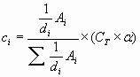 Donde; Ck : carga por valorización asignada al predio k Ak : avalúo catastral del predio k dk : distancia euclidiana del predio k a la obra u obras que lo afecten CT : carga total de las obras a distribuir