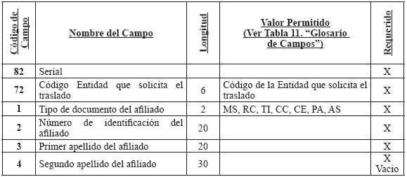 TABLA 12 GLOSARIO DE CAMPOS ARCHIVOS DE TRASLADO