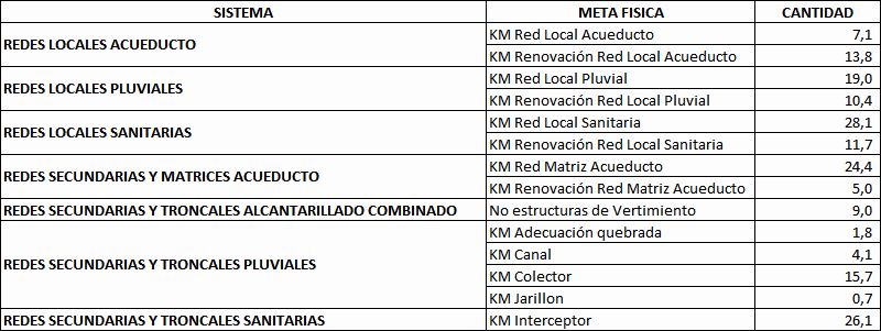Si bien la solicitud del cupo es por $300.000.000.000, los proyectos suman $297.844.423.628, la diferencia en pesos obedece a los ajustes y correcciones monetarias hasta la fecha de suscripción de los contratos de obra. Los proyectos asociados a cada sistema están discriminados por localidades así: